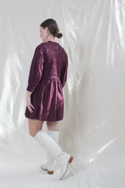 Delicate design details, like its smocked bodice and slight puff sleeve, make this mini an easy-to-wear piece for simple femininity. Smocking throughout bodice with self-tie waist detail, ¾ sleeve with elastic at the cuffs, side pockets, keyhole closure at neck. Fits true to size.Â