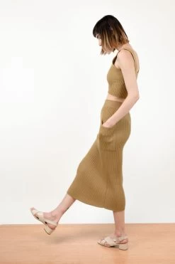 Cropped rib knit tank with a scoop neck, and wide straps.