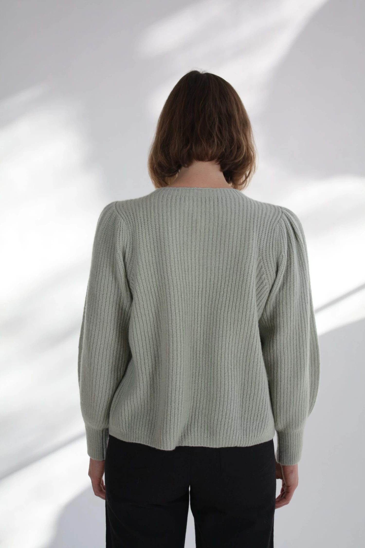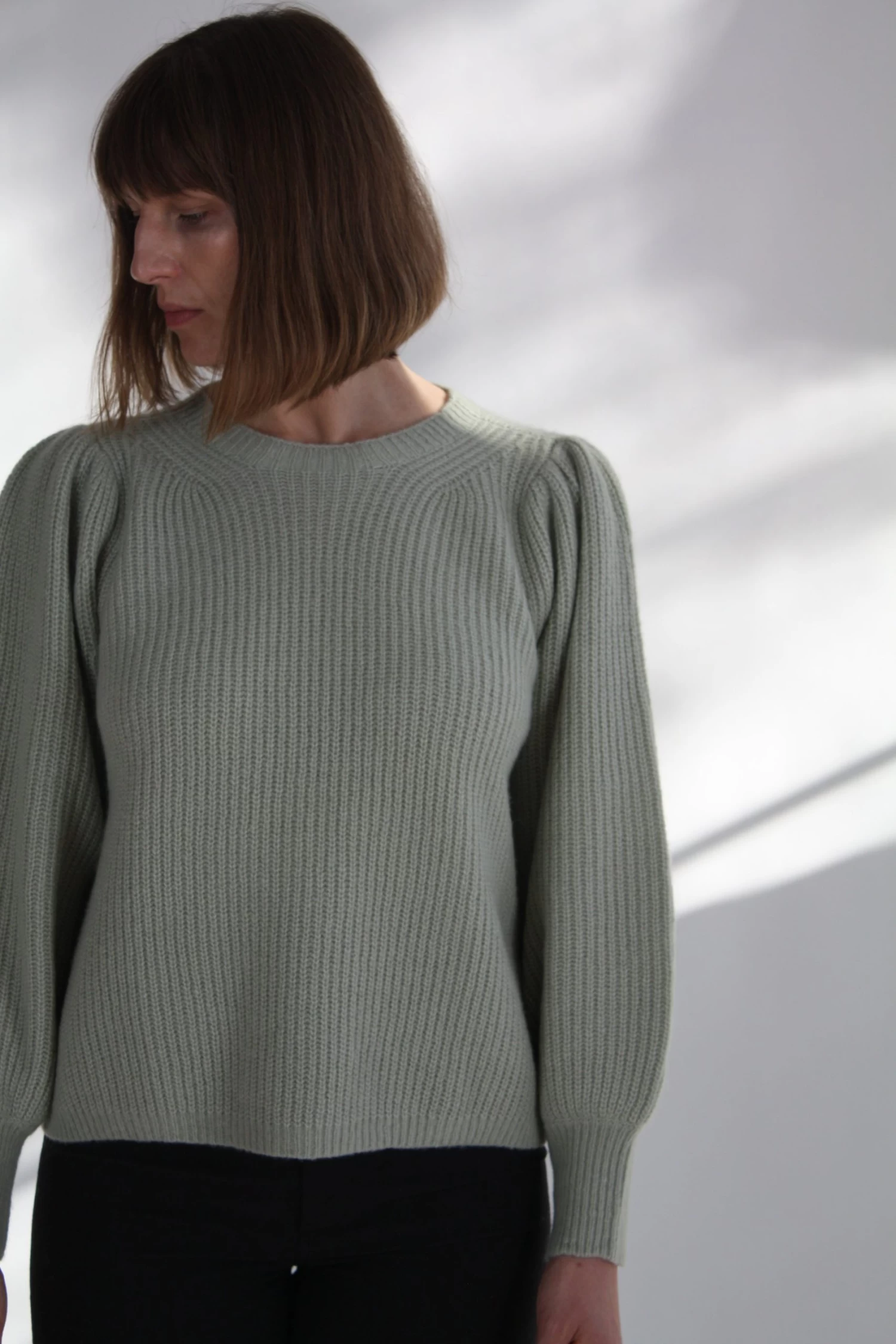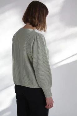 Our most luxurious sweater yet! In an ultra soft silk-cashmere sweater the Arne Sweater will keep you warm, while looking great. Ribbed throughout in tonal neutrals with and a feminine puffed sleeve.Â