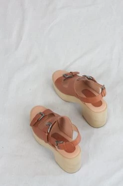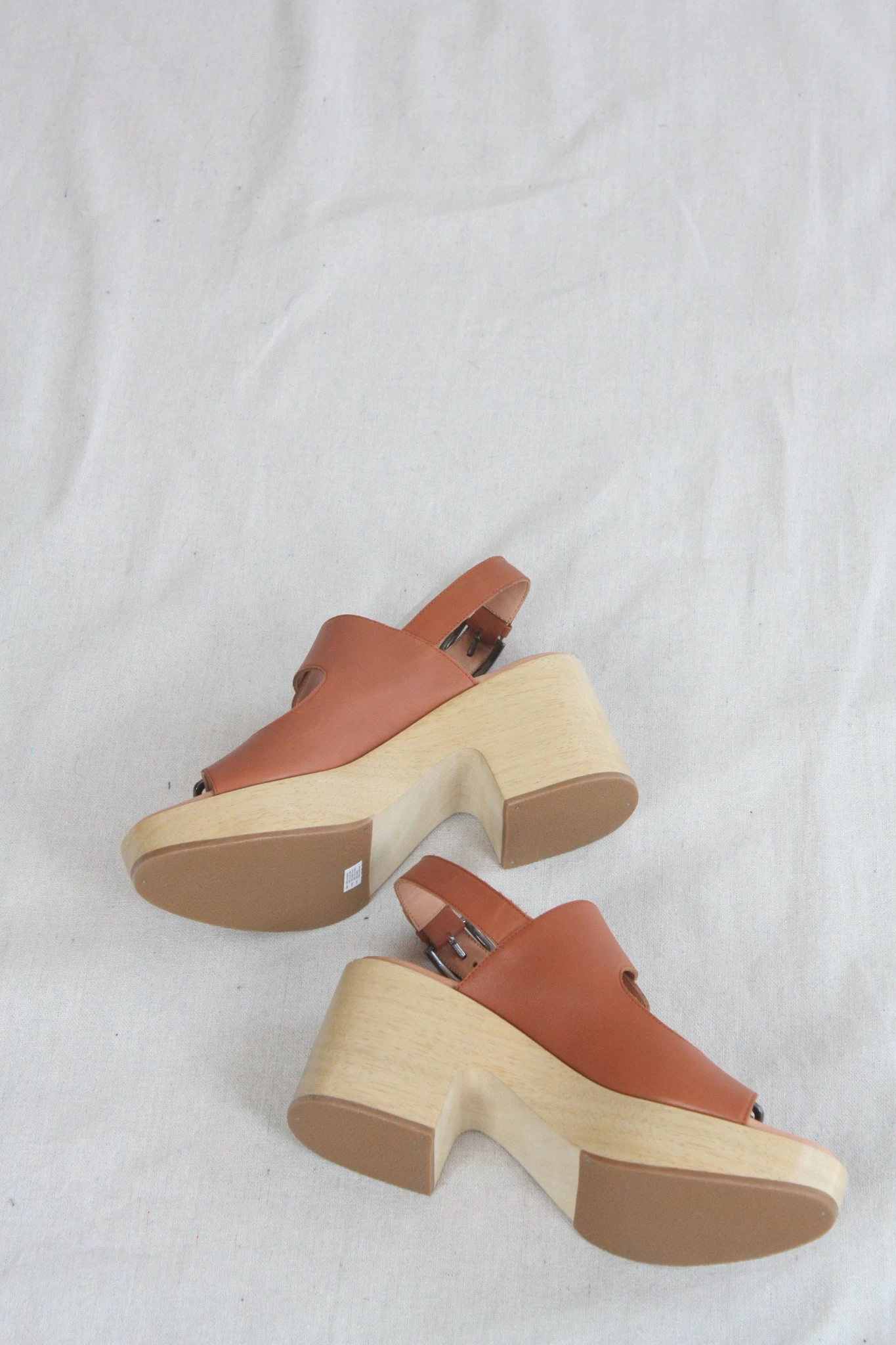 - 100% 100% Kidskin Leather Upper, 100% Wood Base, 100% Rubber Sole