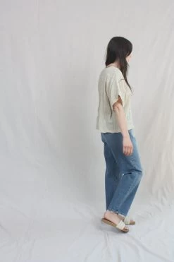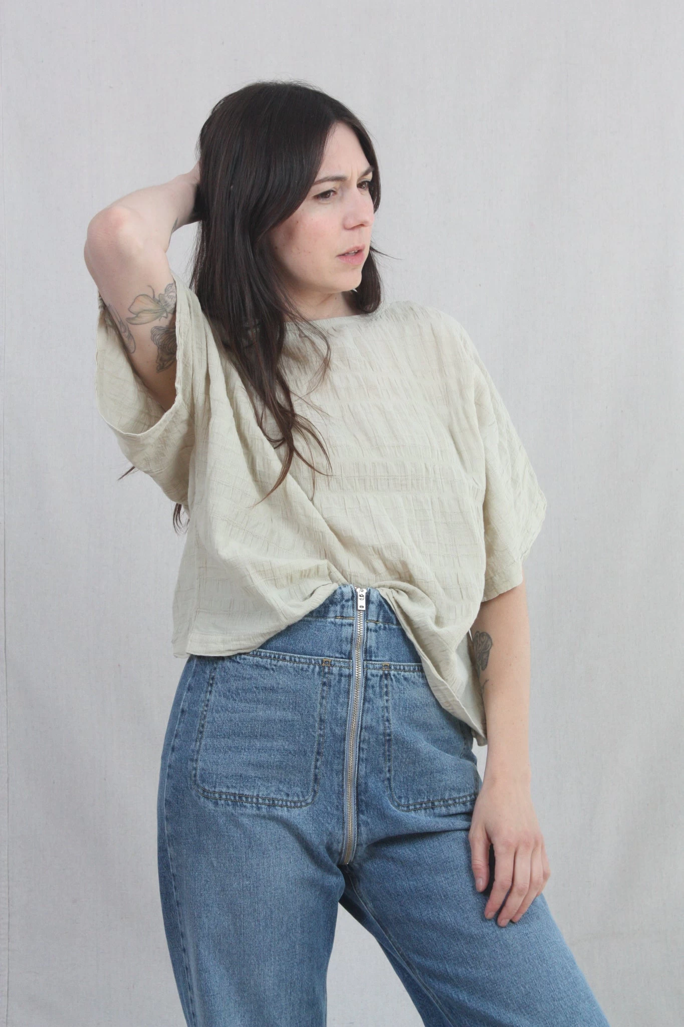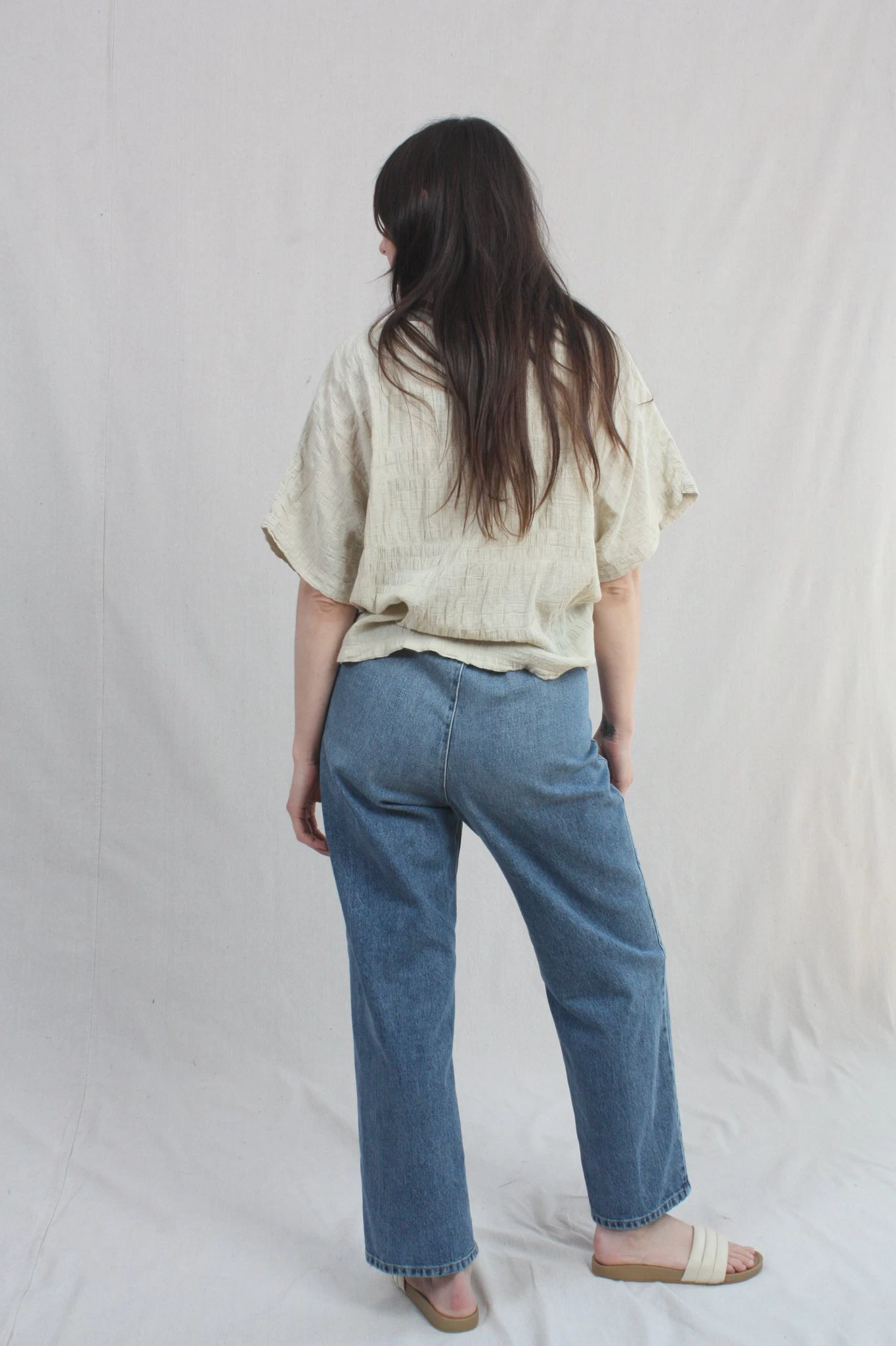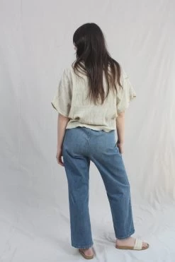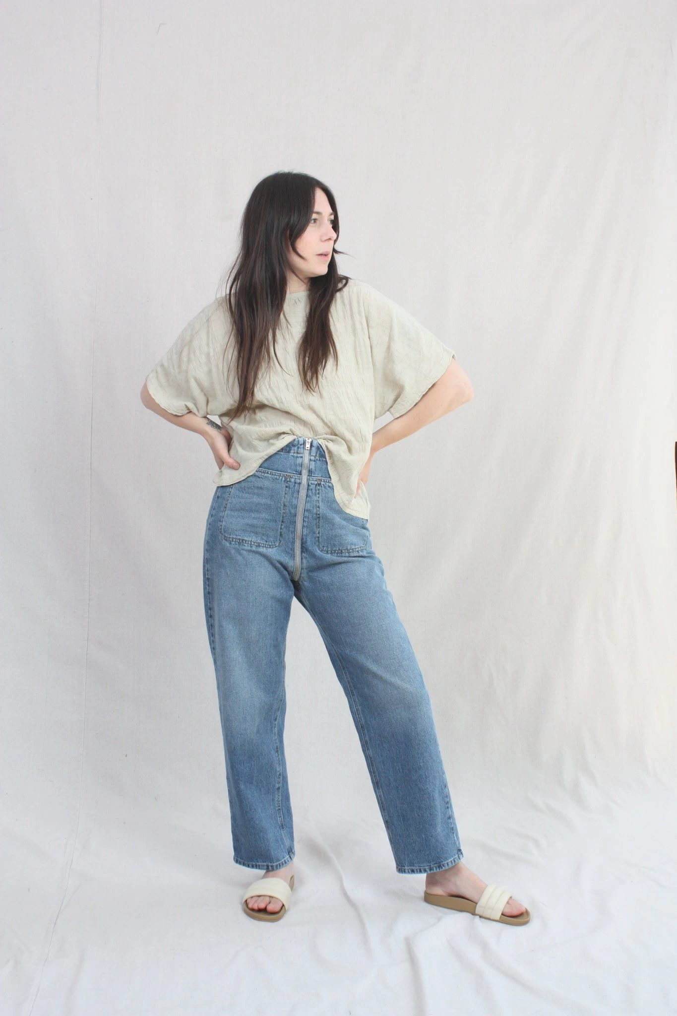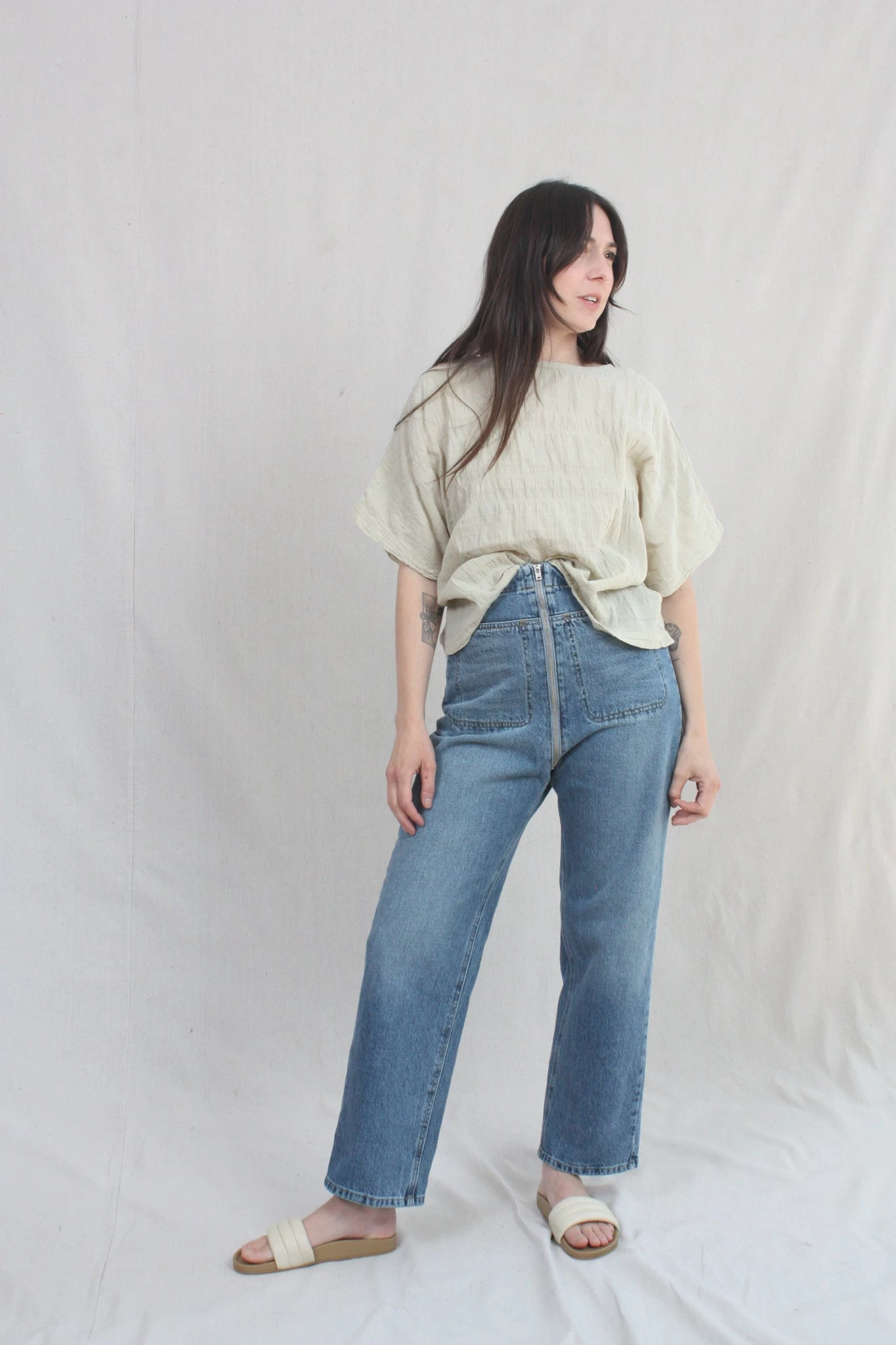 Versatile zip-front straight leg pant with a slight crop. Fits snugly around the hips. Size down if you prefer a higher rise. Exposed zipper closure adds length to the silhouette. Front patch pockets.