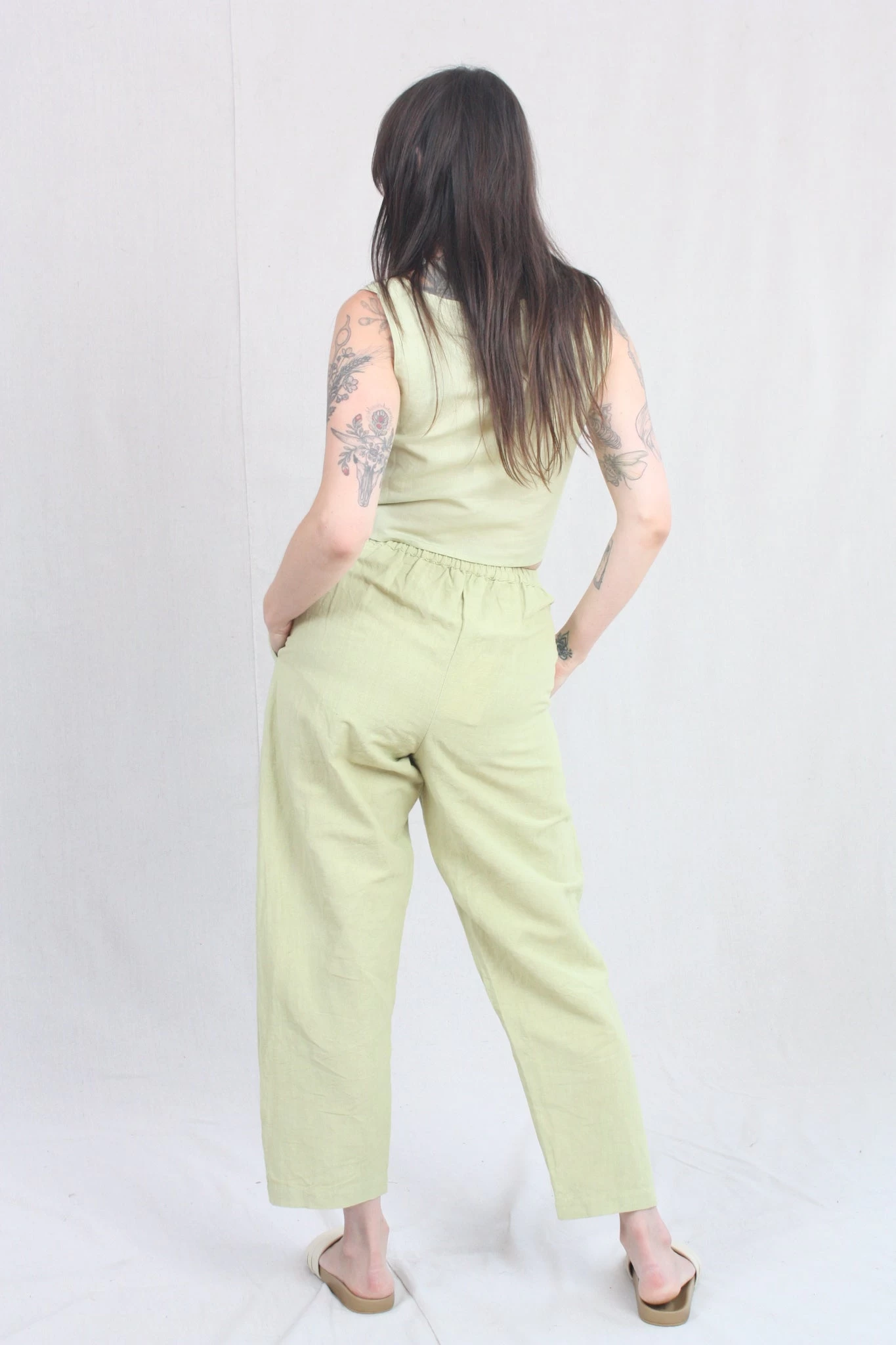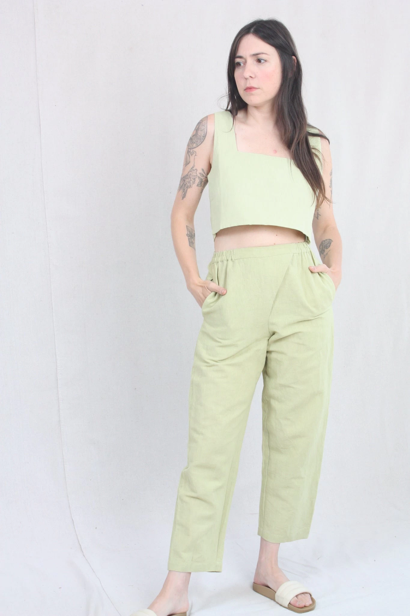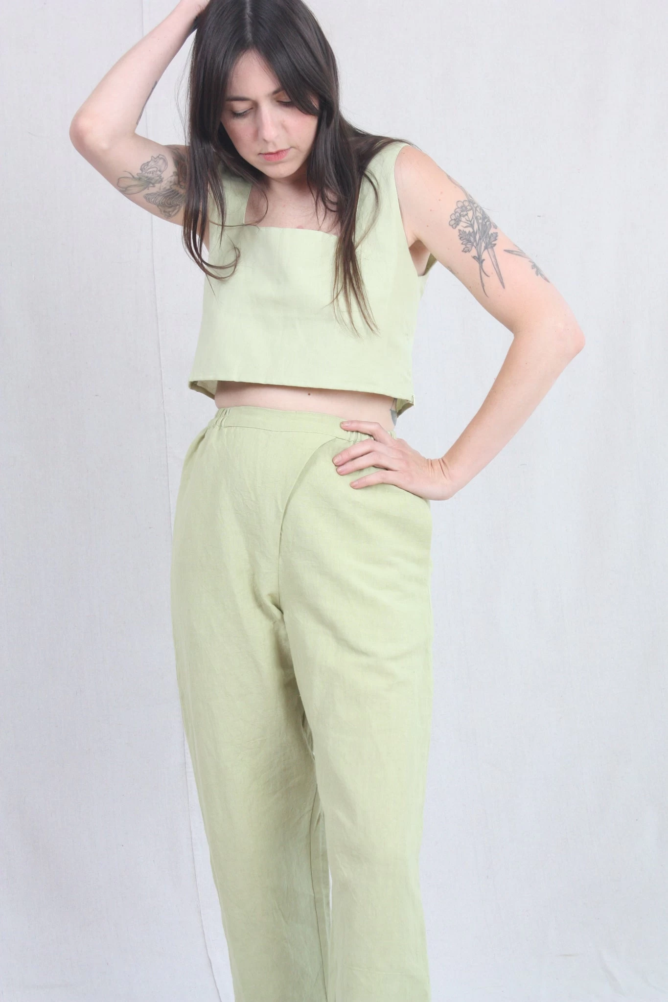 Sleeveless, box crop top with a square neckline and a high back. Such an effortless style, it will easily be your new go-to top for the season.