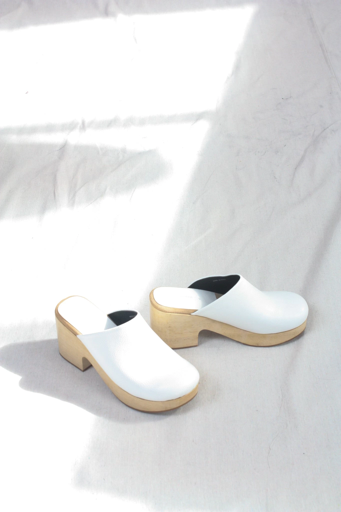 - 100% Pebbled Leather Upper, 100% Wood Base, 100% Rubber Sole