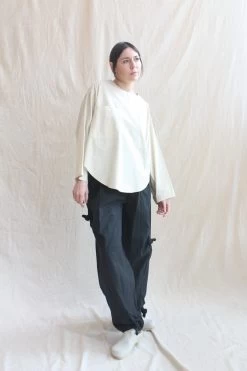 Single button closer peak lapel boxy blazer for all your summer layering needs. Oversized fit. Japanese cotton linen twill with parchment poplin lining. Patch pockets. Padded Shoulders. Self Covered buttons – Handmade in Italy. Pair with the coordinating Relaxed Lean Trouser.