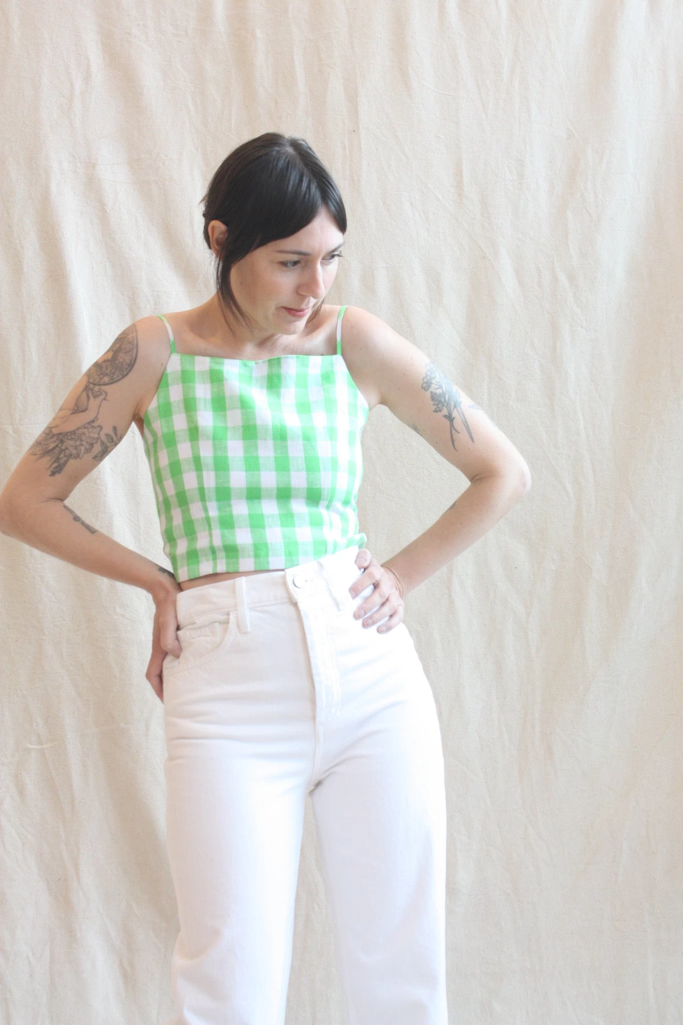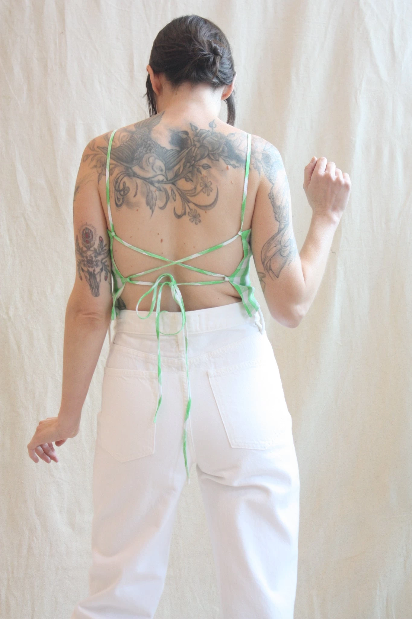Carrie is a fully-lined tank that hits just below the natural waistline. Featuring spaghetti straps, straight neckline and a self-tie, lace-up back that allows for an adjustable fit.