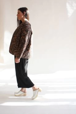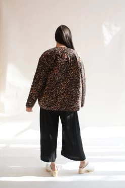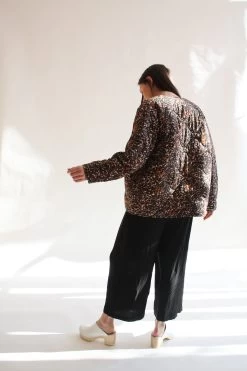 Lightweight quilted jacket in animal printed cotton. Oversized, boxy fit that will soften with wear. Side pockets and snap closures down front.
