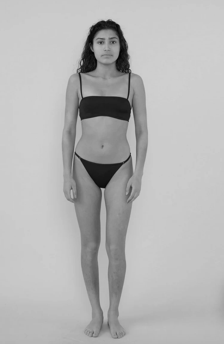 A classic and flattering string bottom, meant to sit anywhere on the hips you prefer. Finished with zig-zag stitching and rings and sliders at for an adjustable fit. Fully Lined. 2-Way Stretch.