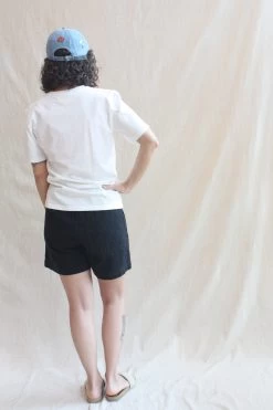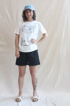 Fitted off white t-shirt with printed black Clouds illustration on front.