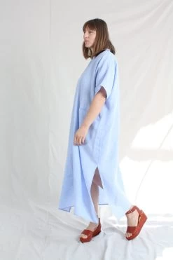 The airy Culver Dress slips on easily as daywear or a swim topper. This free-flowing silhouette is cut for an oversized fit. V-neck. Patch pockets at front. Side slits at hemline.
