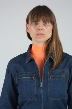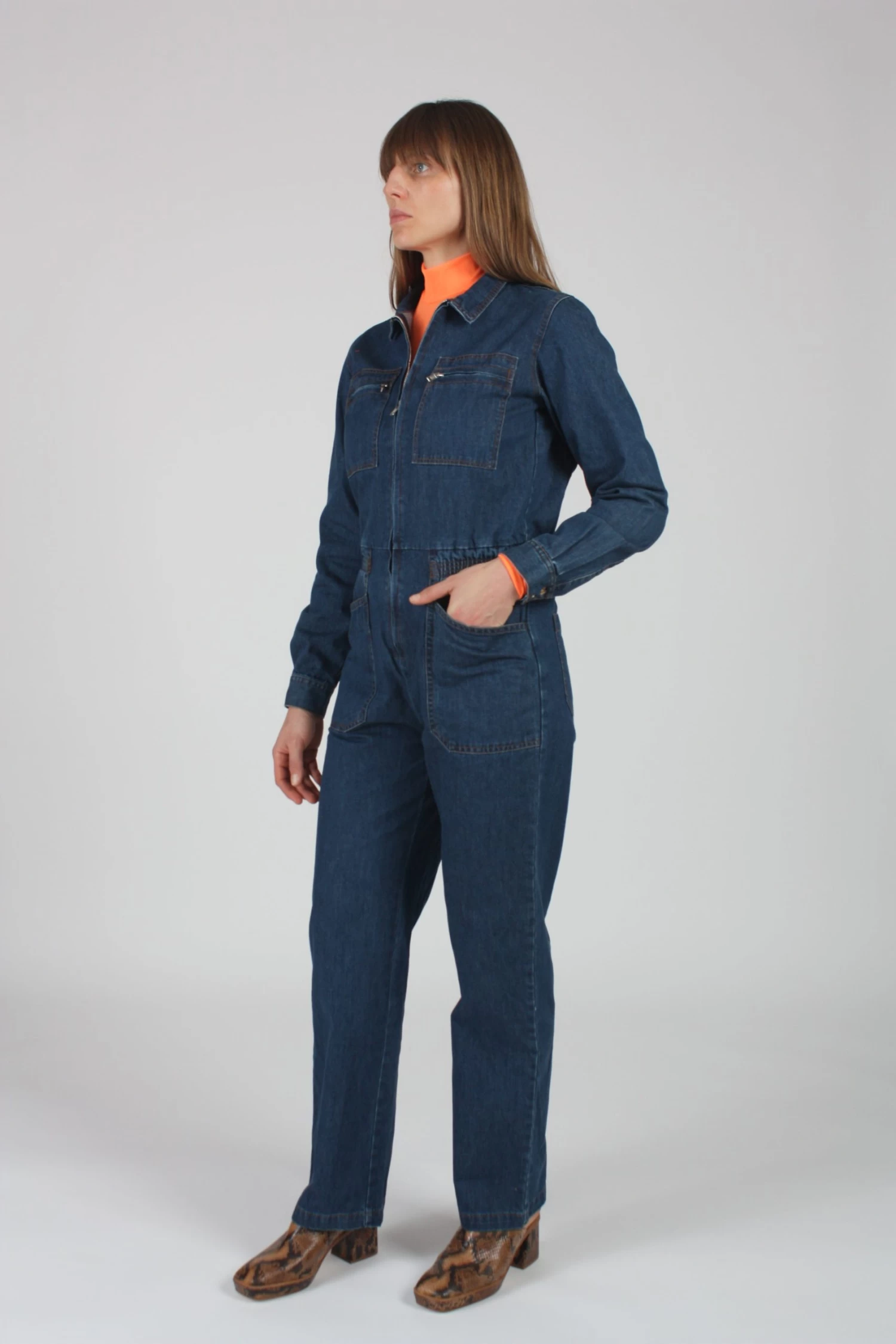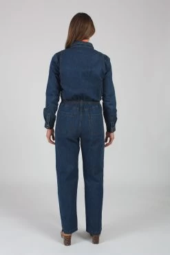L.F.Markey’s classic fitted boilersuit in indigo denim . Elasticated at the waist with wide, straight legs. Indigo with contrast terracotta stitching.