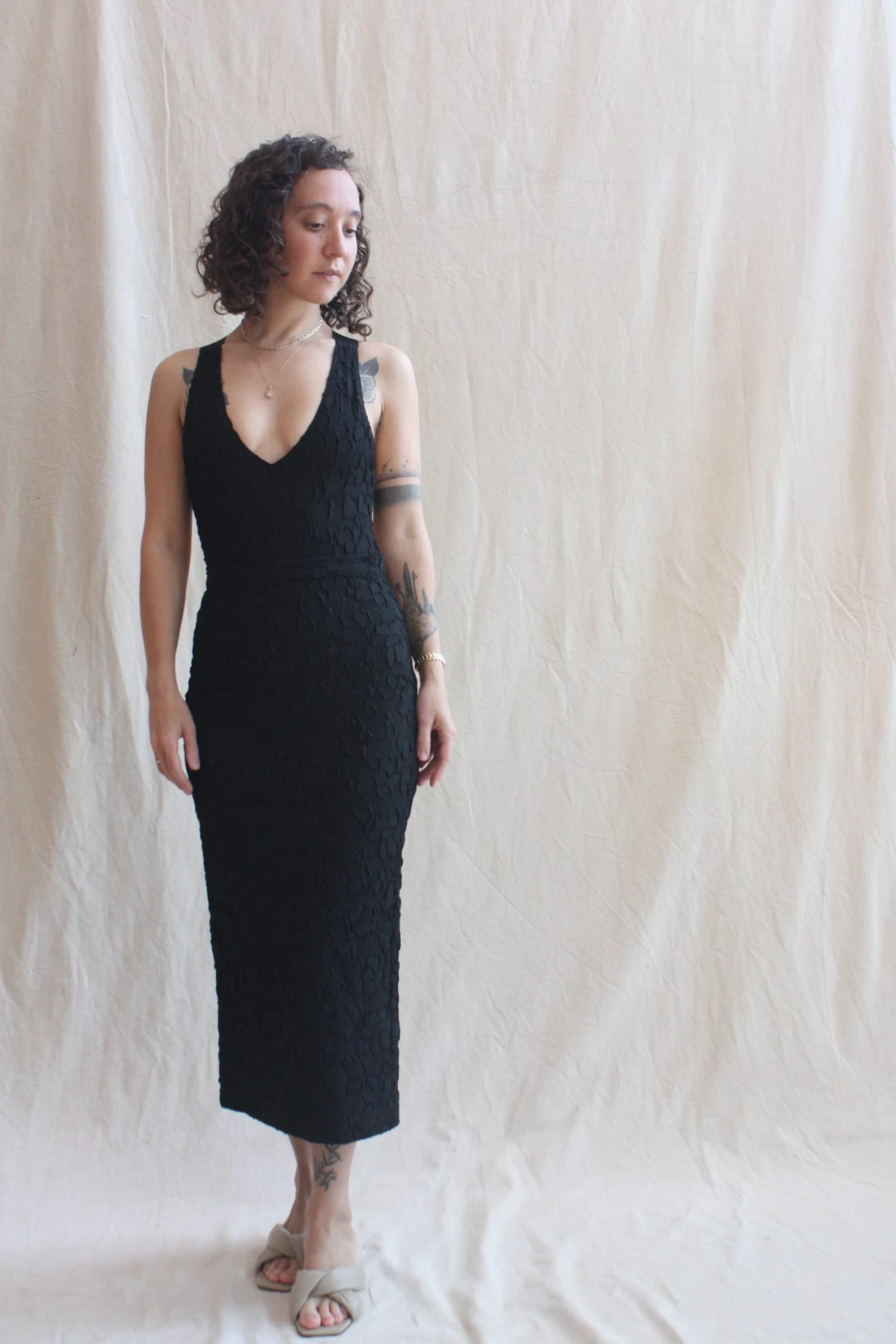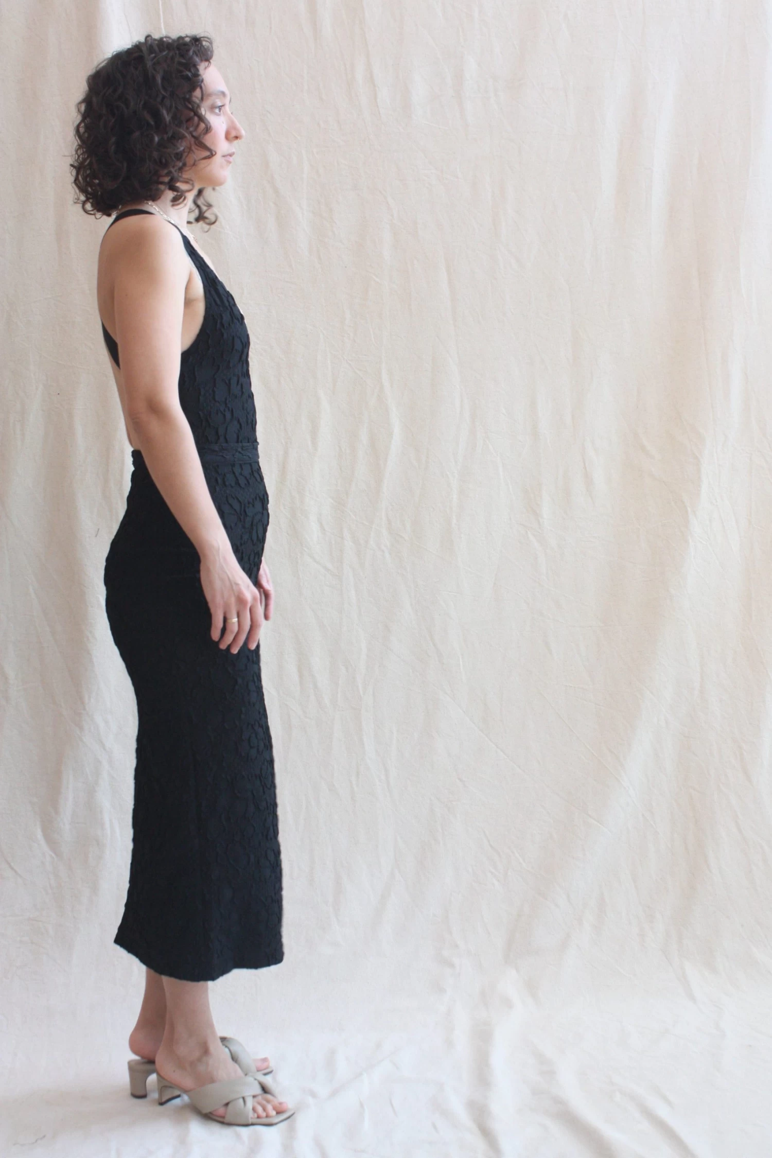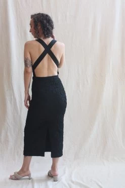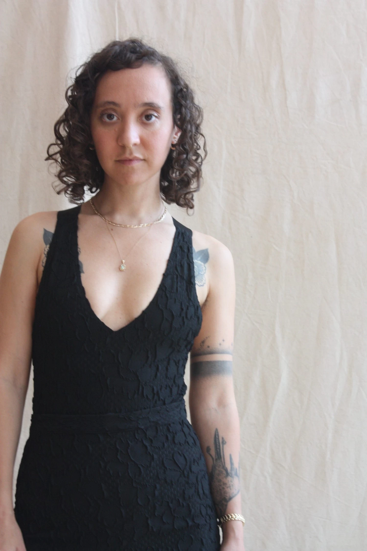 One-piece swimsuit in textured jacquard Flower Stretch with wide elastic straps across the back and scalloped edges. Wear as a swimsuit or style as a bodysuit. One of the Rachel Comey customer’s favorite fabrications, this soft bi-stretch fabric is made in Lyon, France, by a mill that specializes in swimwear and lingerie materials. Coordinates with the Dara Skirt.