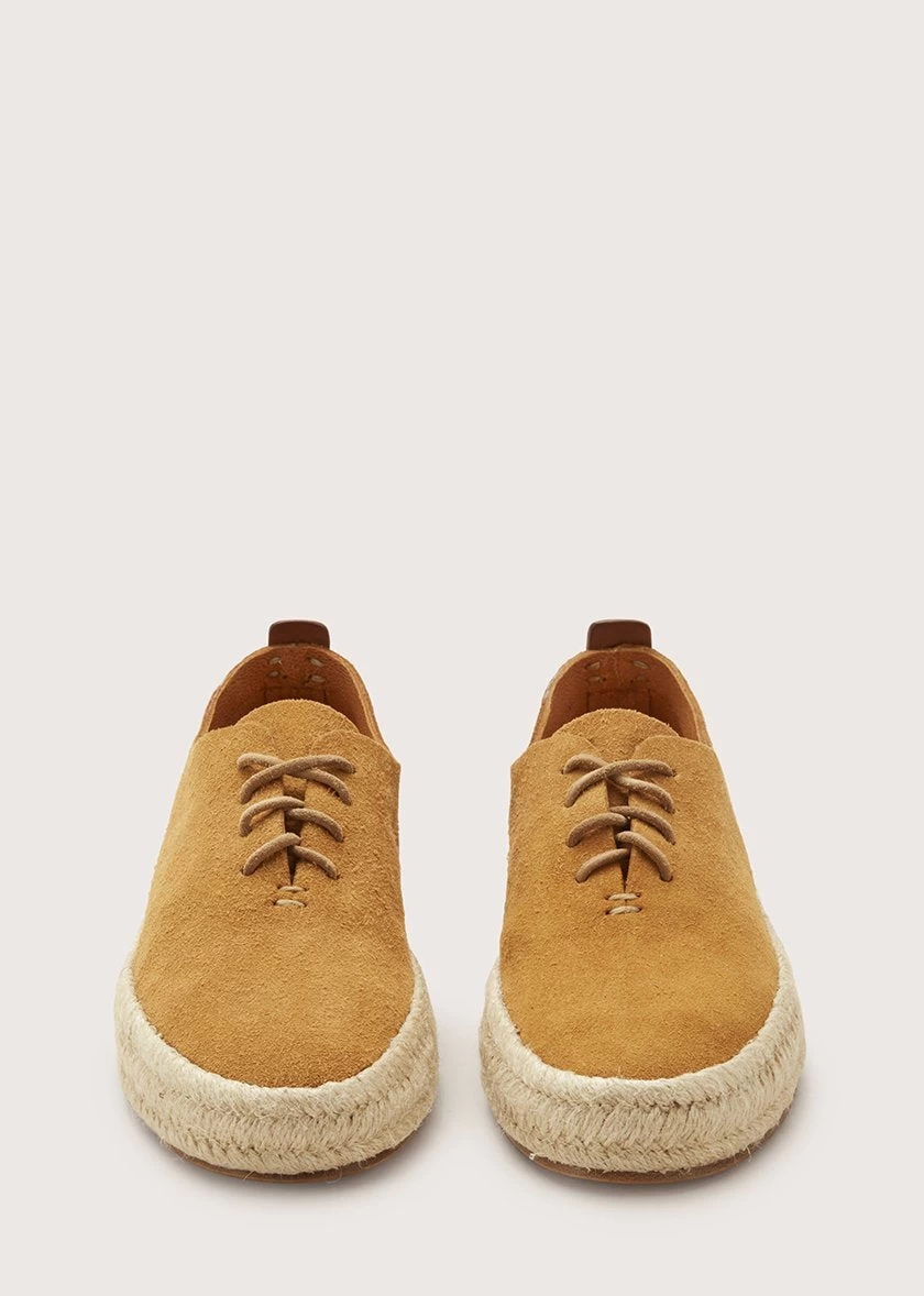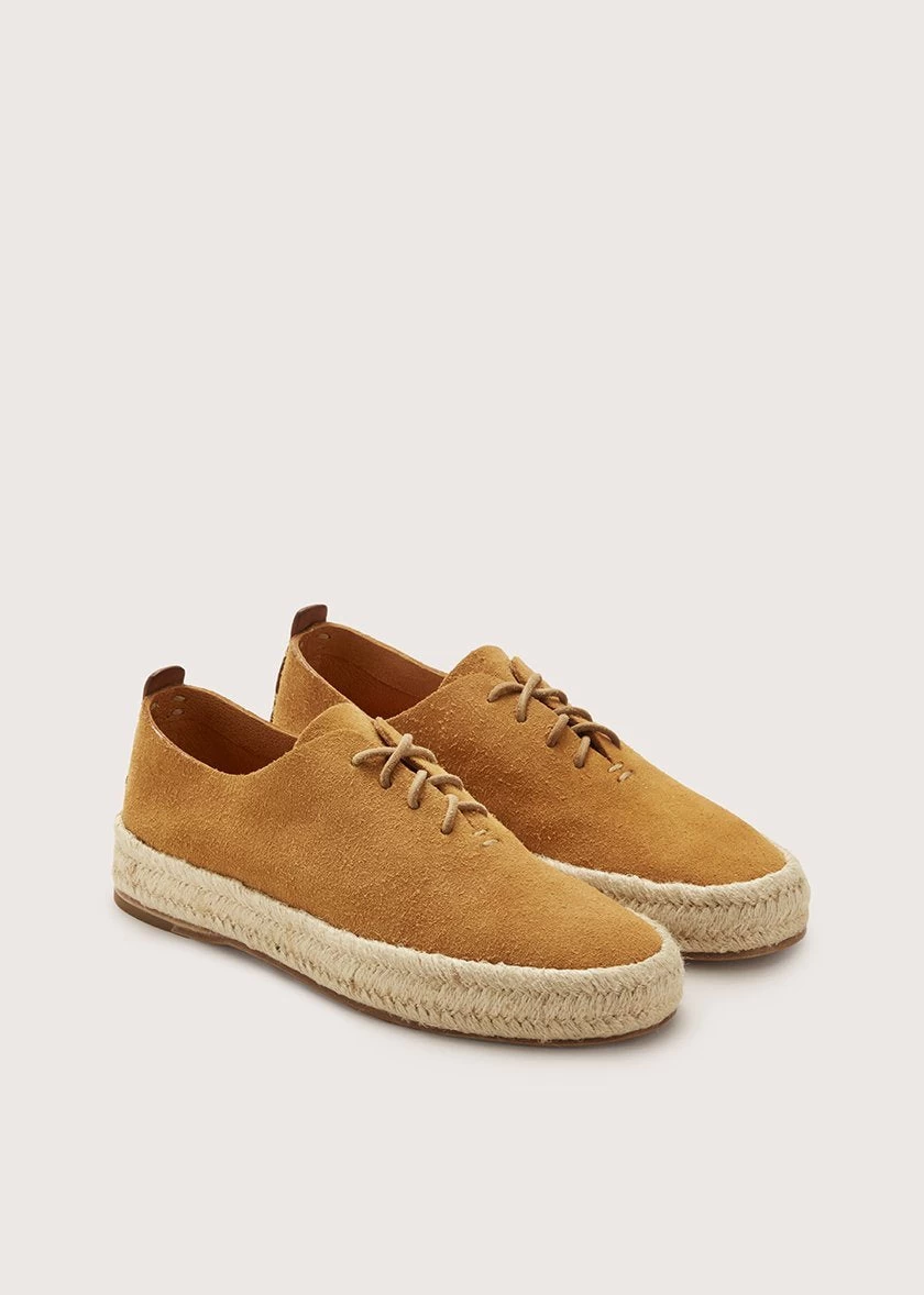 A minimal, plimsoll-style sneaker with natural jute fiber wrapping inspired by 13th century Spanish footwear. Each one-piece semi-cordovan upper is hand stitched at the welt for easy resoling. Soft, vegetable tanned leather insoles allow the wearer’s feet to breath; sturdy cork midsoles provide support and natural odor-resistance, and will mold to the shape of the wearer’s foot with time.