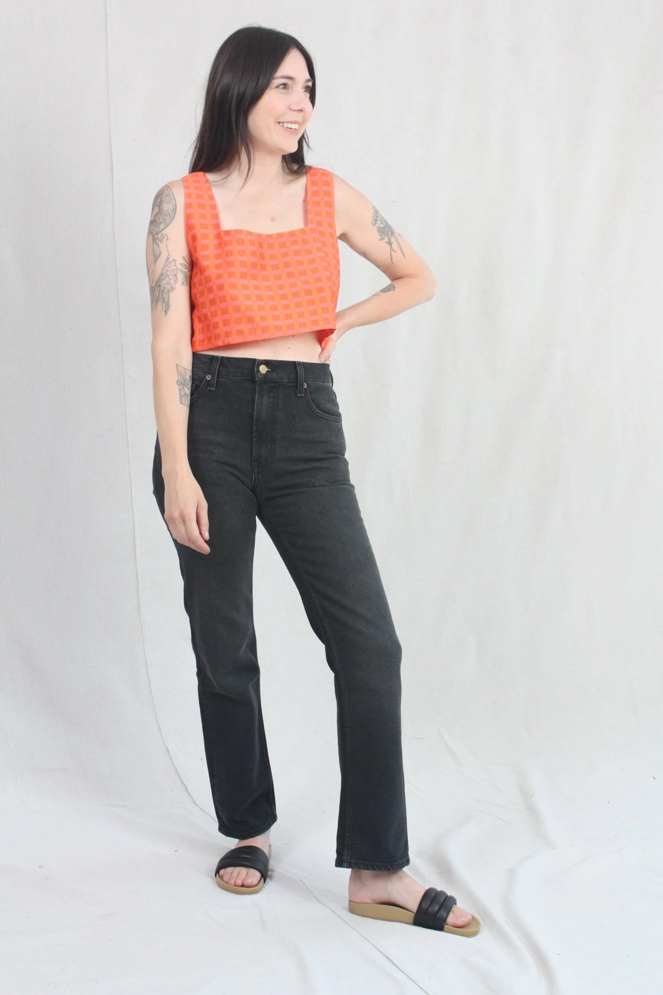 B Sides jeans fit true to standard sizing. If you are in between sizes we suggest sizing up. Measurements of size 25 are 30” waist, 11″ front rise, 15″ back rise, 27.5″ inseam and 8″ leg opening