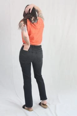 The Field Kick Jean is a B Sides slimmest silhouette in their signature stretch denim. Mid-rise, slim fit through the hip and thigh with a slim cropped leg. Kick flare. Comfort stretch inspired by early cowboy jeans. Zip fly, signature brass button closure.