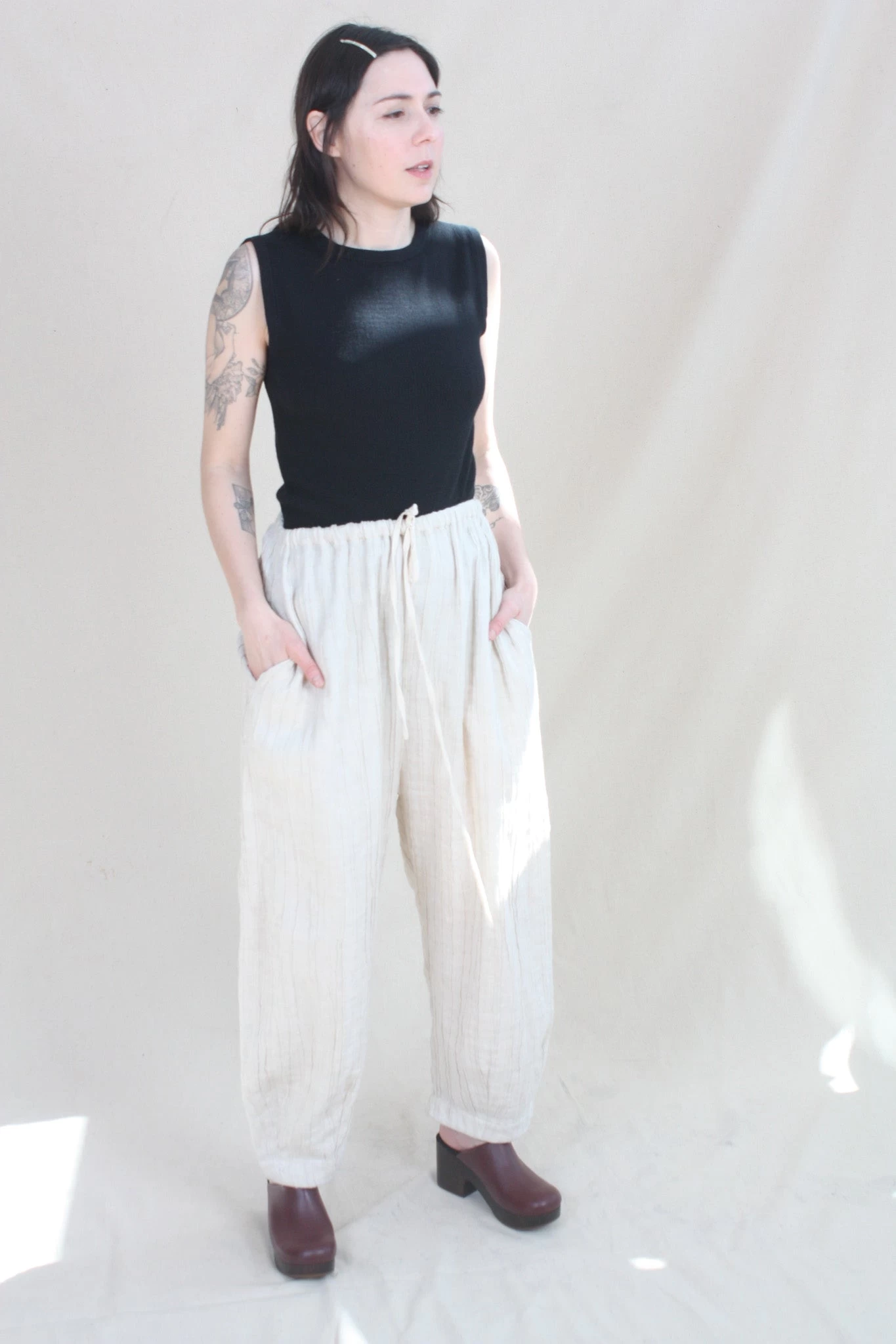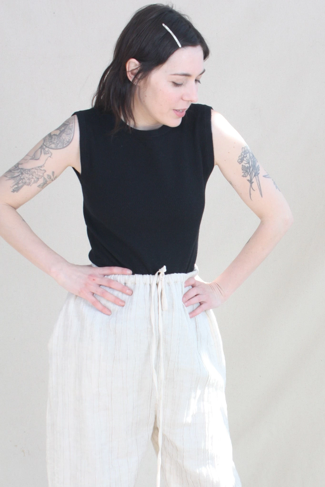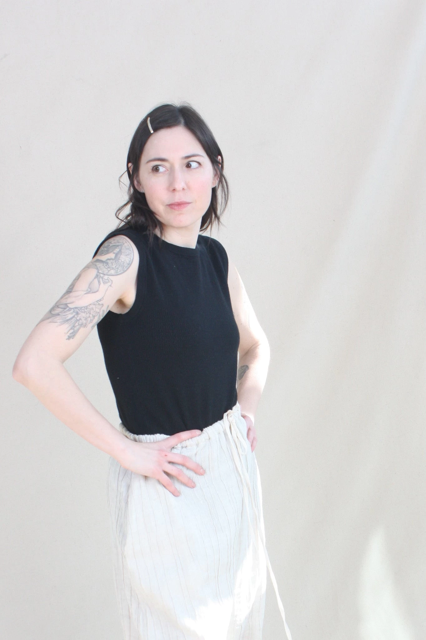 Knit sleeveless shell in a fine pima cotton, alpaca with a hint of stretch.