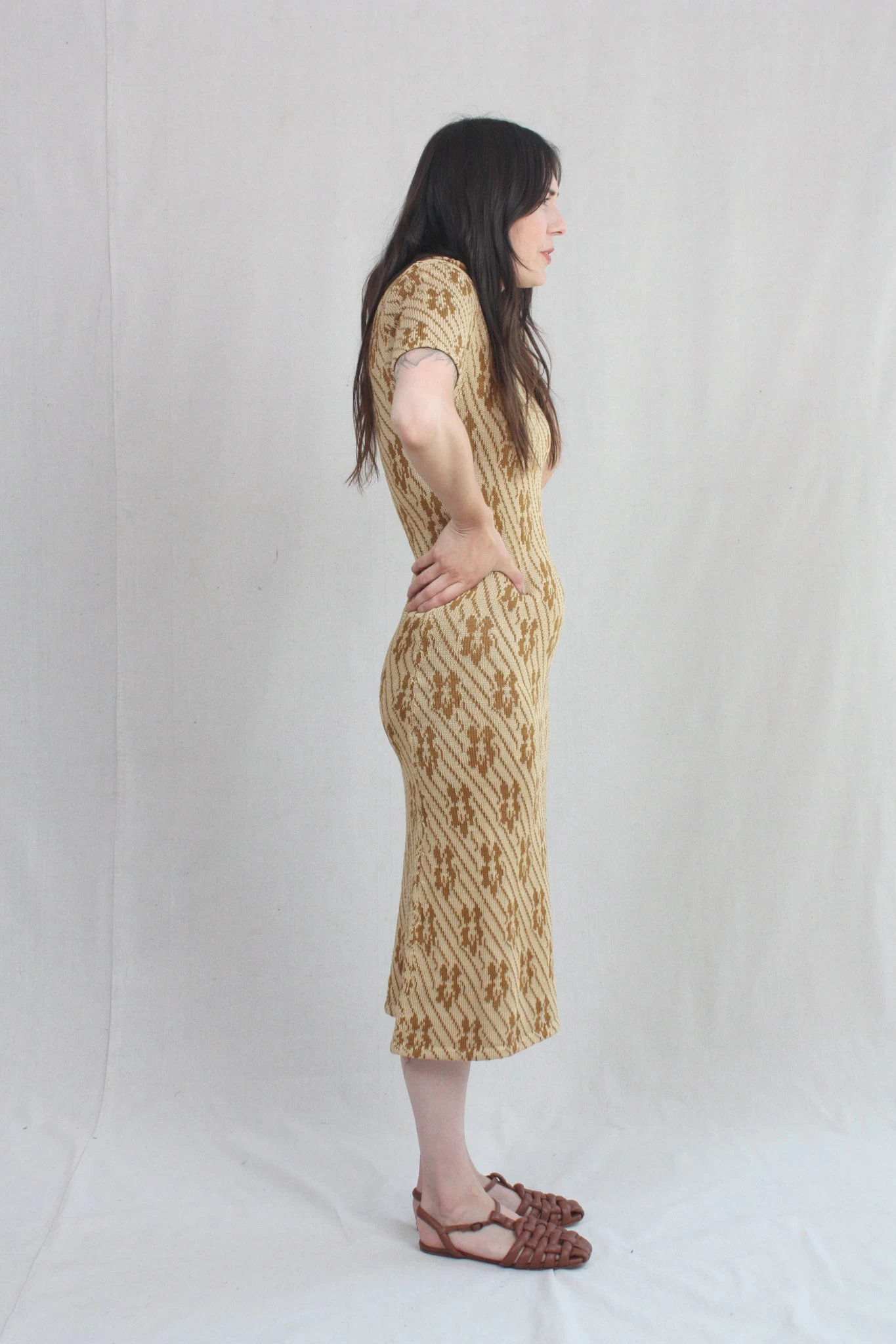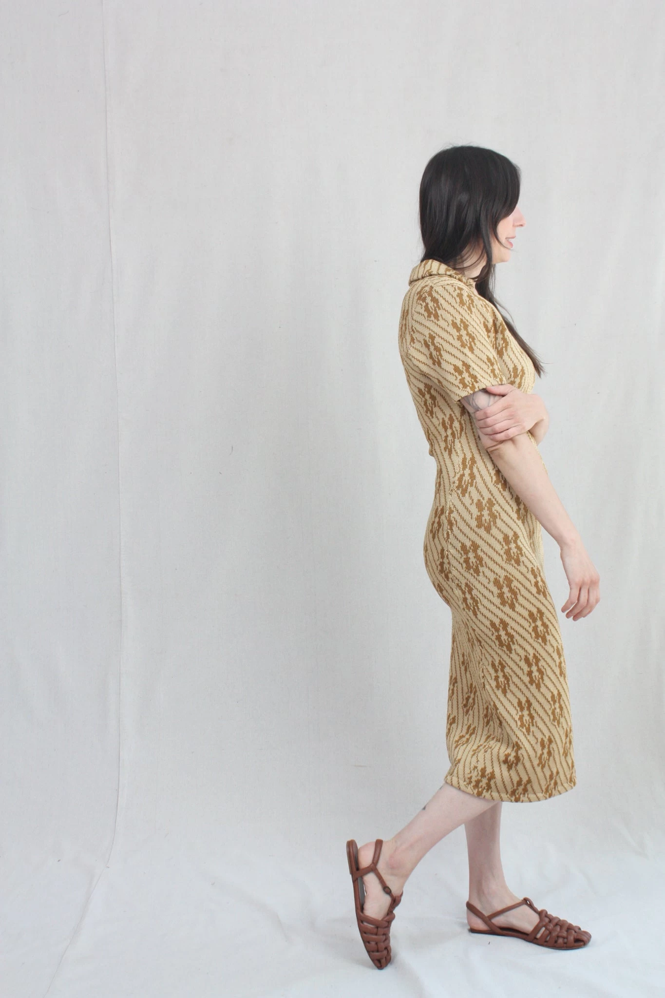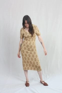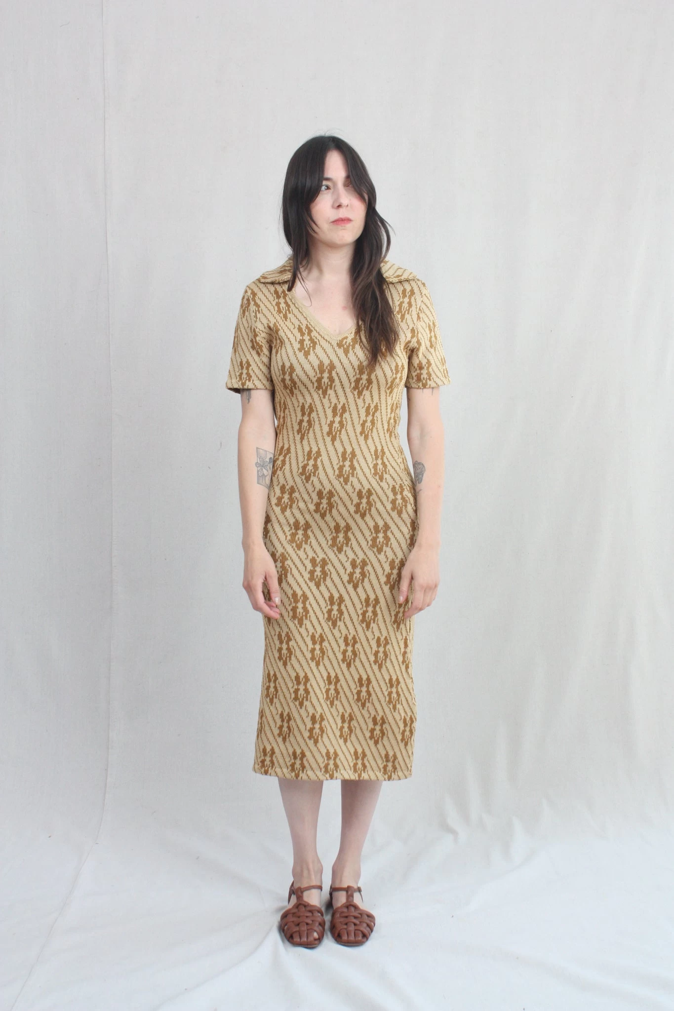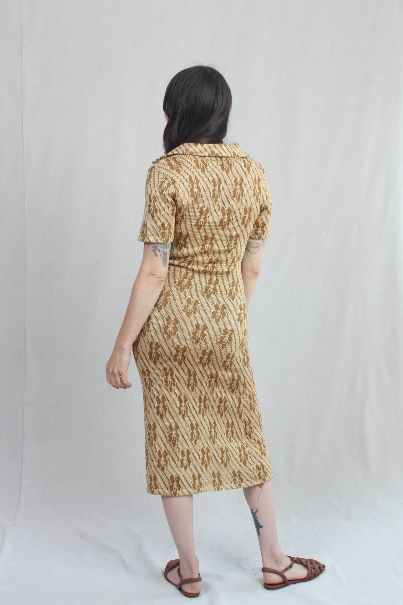 Knit polo dress in a caramel floral.Â