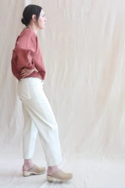 A favorite relaxed, elevated carpenter pant with front patch panels, cut in floral denim. This style can sit at the lower waist, on your hips, or tighten the back strap to sit higher at your natural waist. Angled darts give the leg a subtle cocoon shape that ends in a slight crop. Mid rise, straight leg, and exposed button fly closure. Five pocket styling. Workwear-inspired front patch panels.
