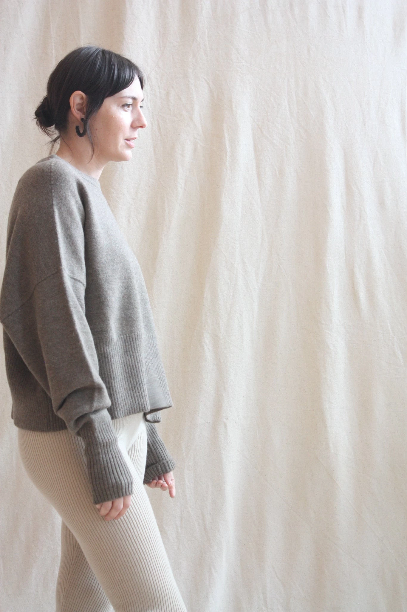 Slightly cropped, knit crewneck with a soft washed hand and subtle stretch. Neck binding. Rib cuff and bottom finishing.
