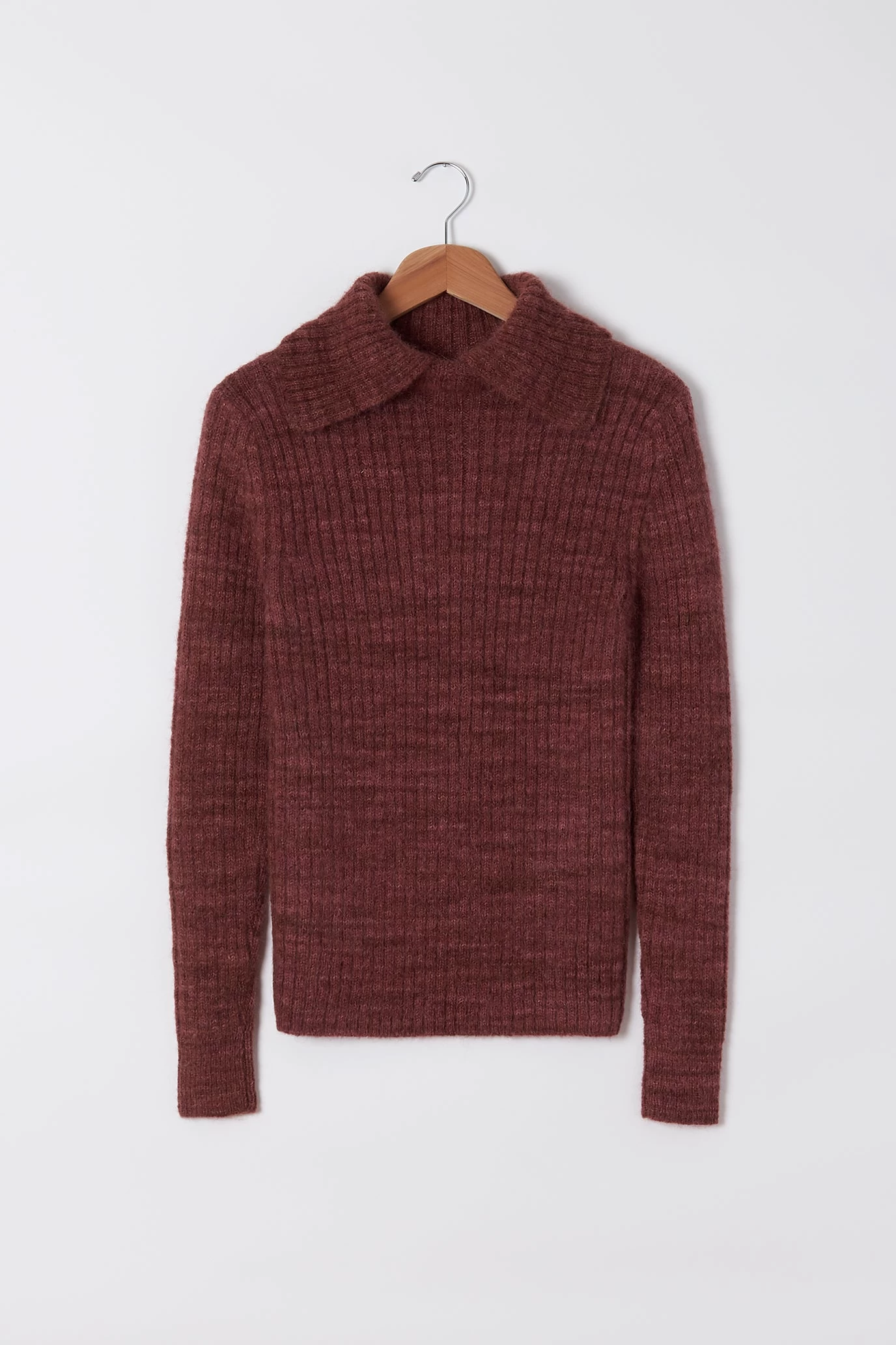 A collared pullover sweater in a super wool, silk blend. Slim fit.
