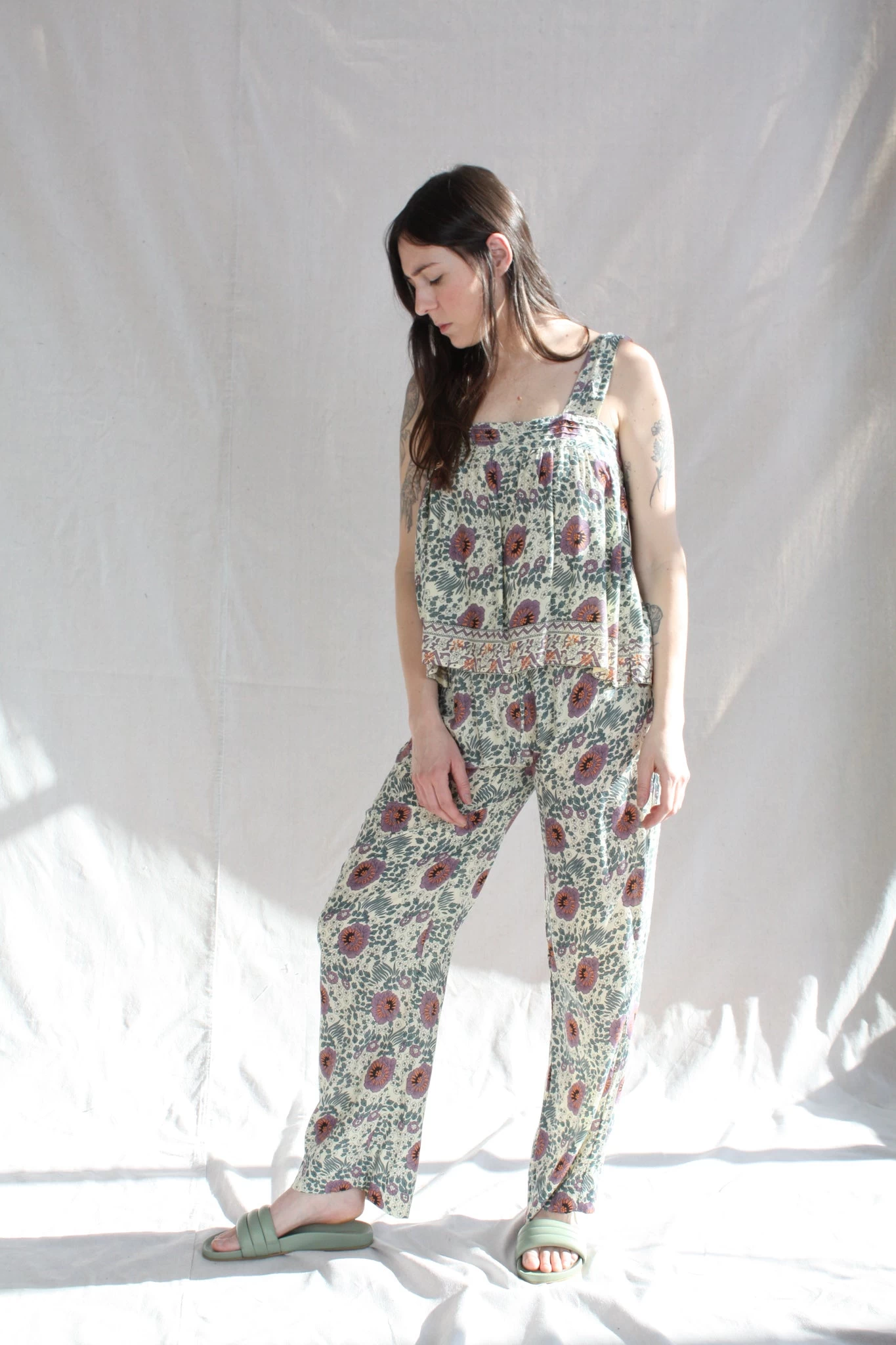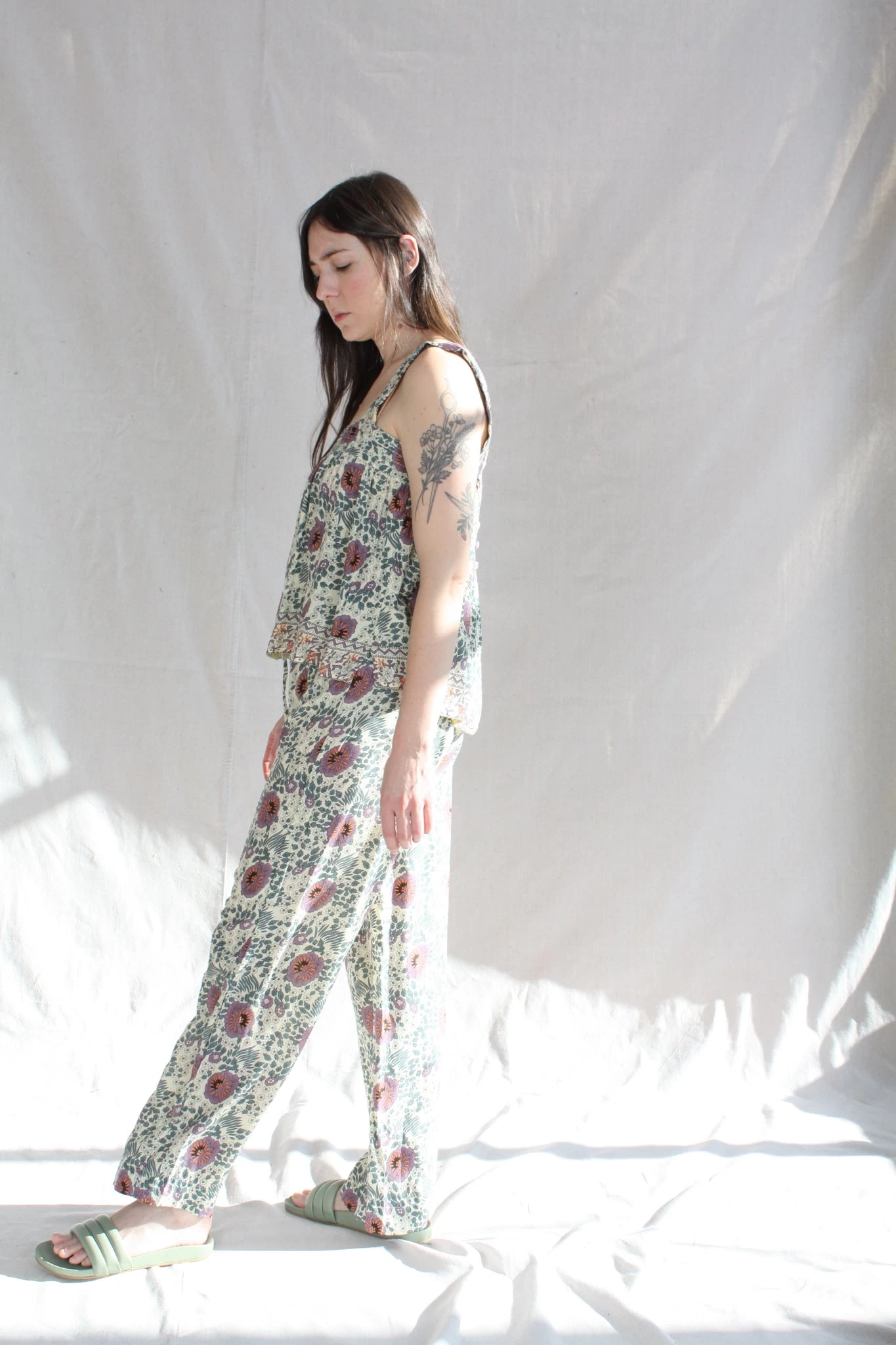 Easy and chic lounge pants. Cased elastic waist with tasseled tie, pockets, and loose straight legs. Hits at the ankle.