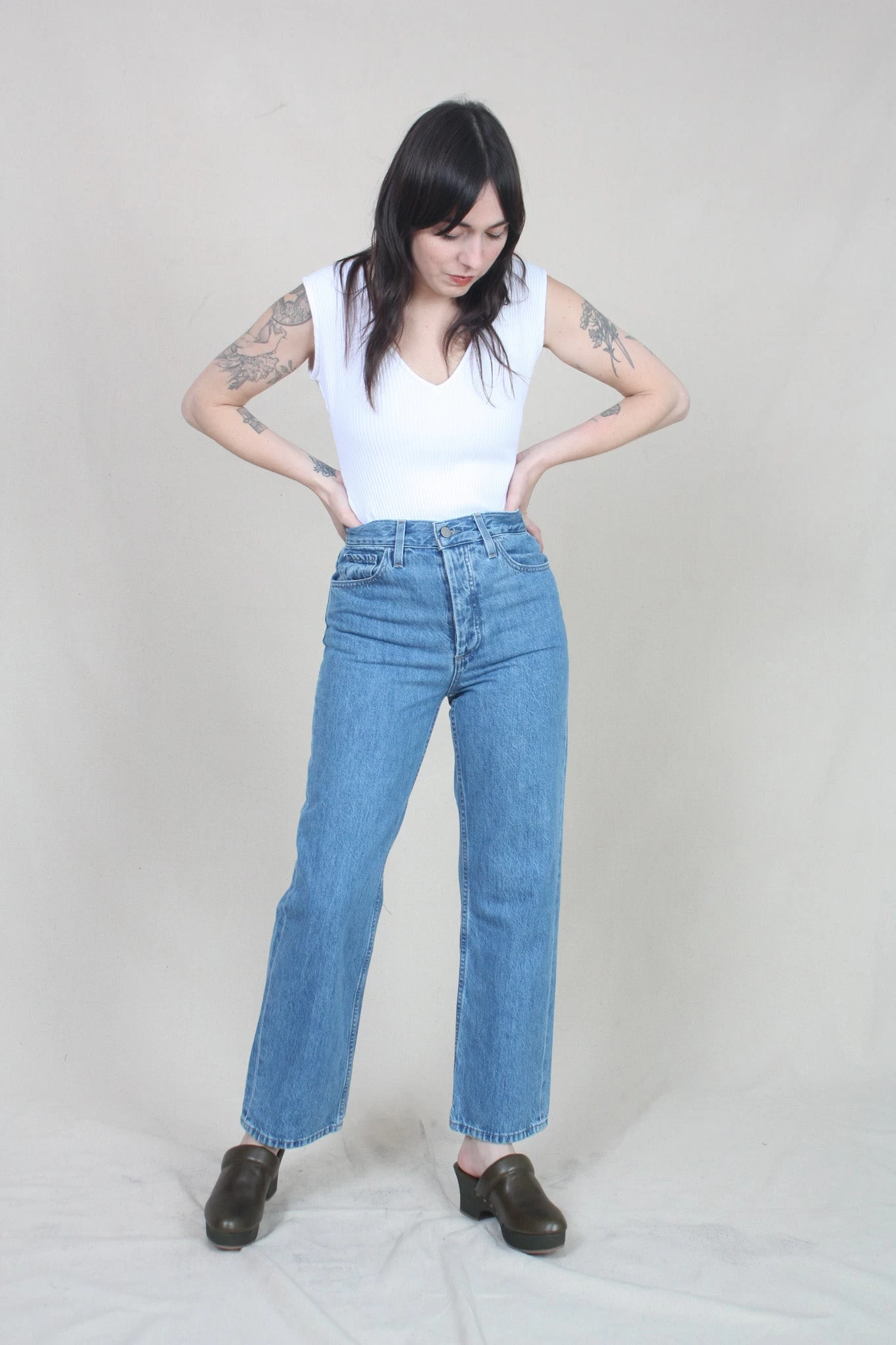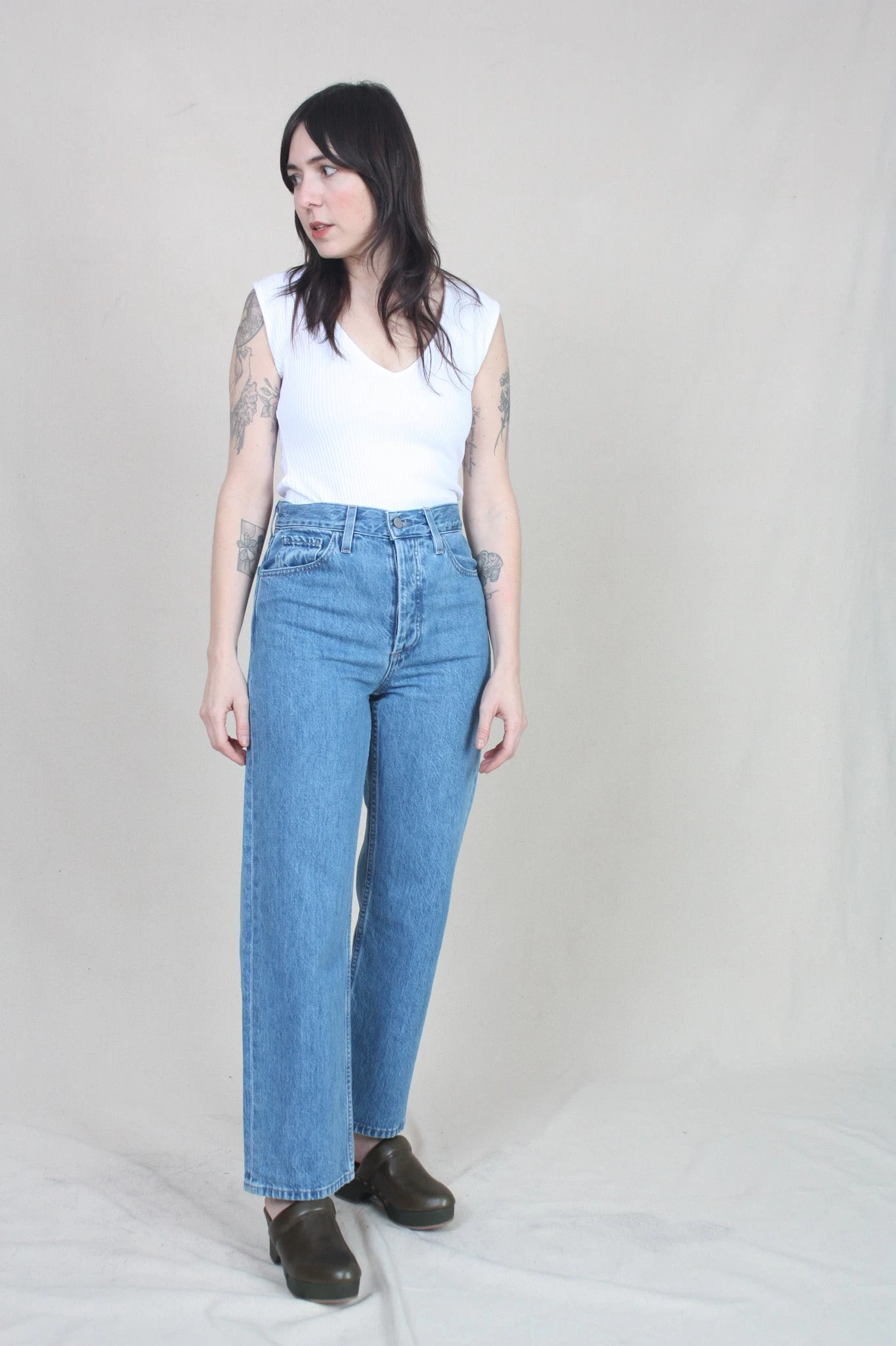 Janet is an unlined sleeveless bodysuit in a textured rib knit. Featuring a plunging V-neck, mid-leg cut and button snap closure. Pair with the Monte pant or dress up with the Denise skirt. Made from organic cotton with a touch of elastane for comfort and stretch.