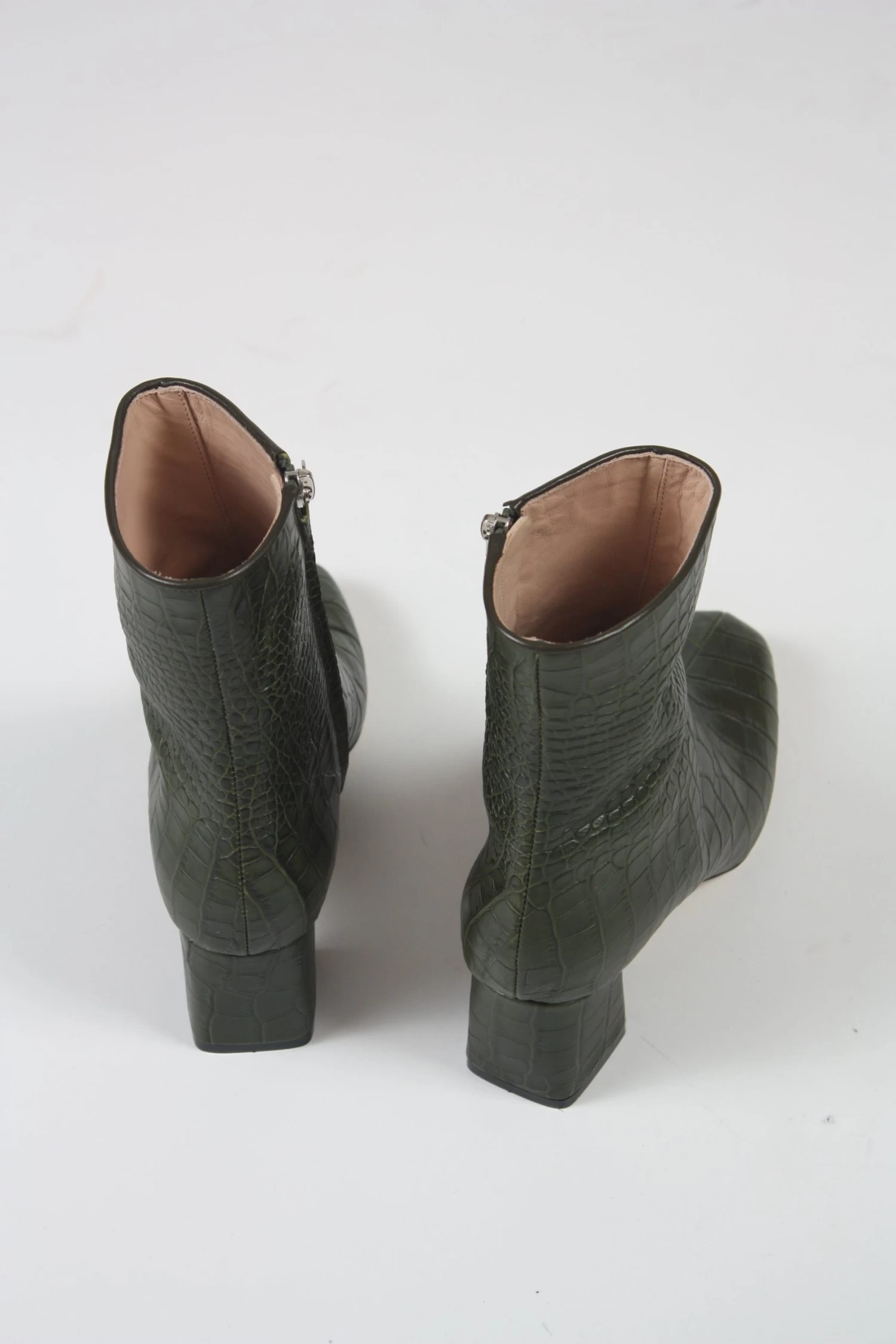 The Kaya Boot is Brother Vellies’ take on a traditional Chelsea boot, made more feminine by a slightly tapered toebox and higher heel. In stamped-croc leather with a calf skin lining.