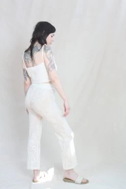 This pant, inspired by our favorite vintage lacework, features fine gauge Pima cotton. With a slim fit with a cropped leg and covered elastic waist, these are a quick way to elevate any ensemble.