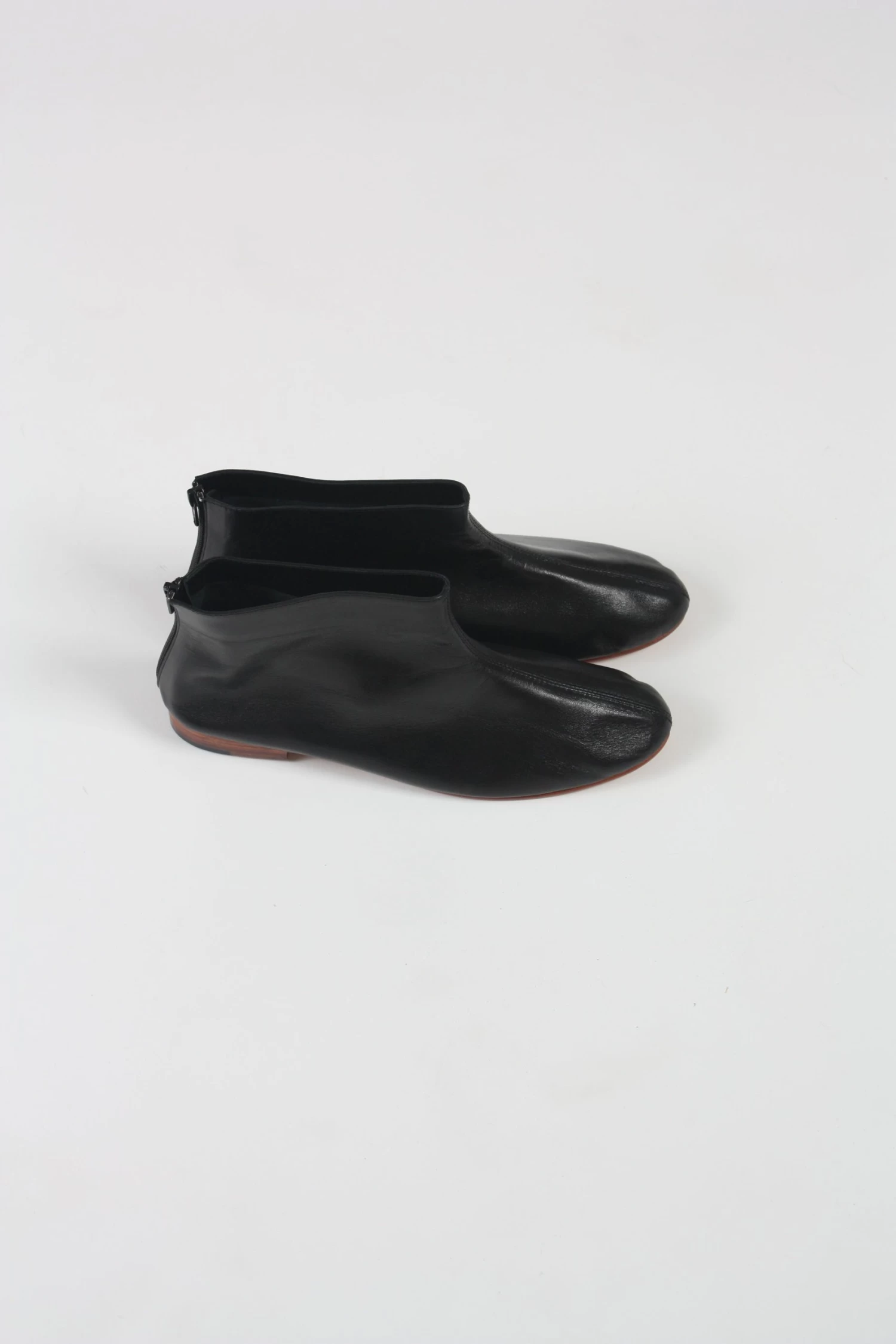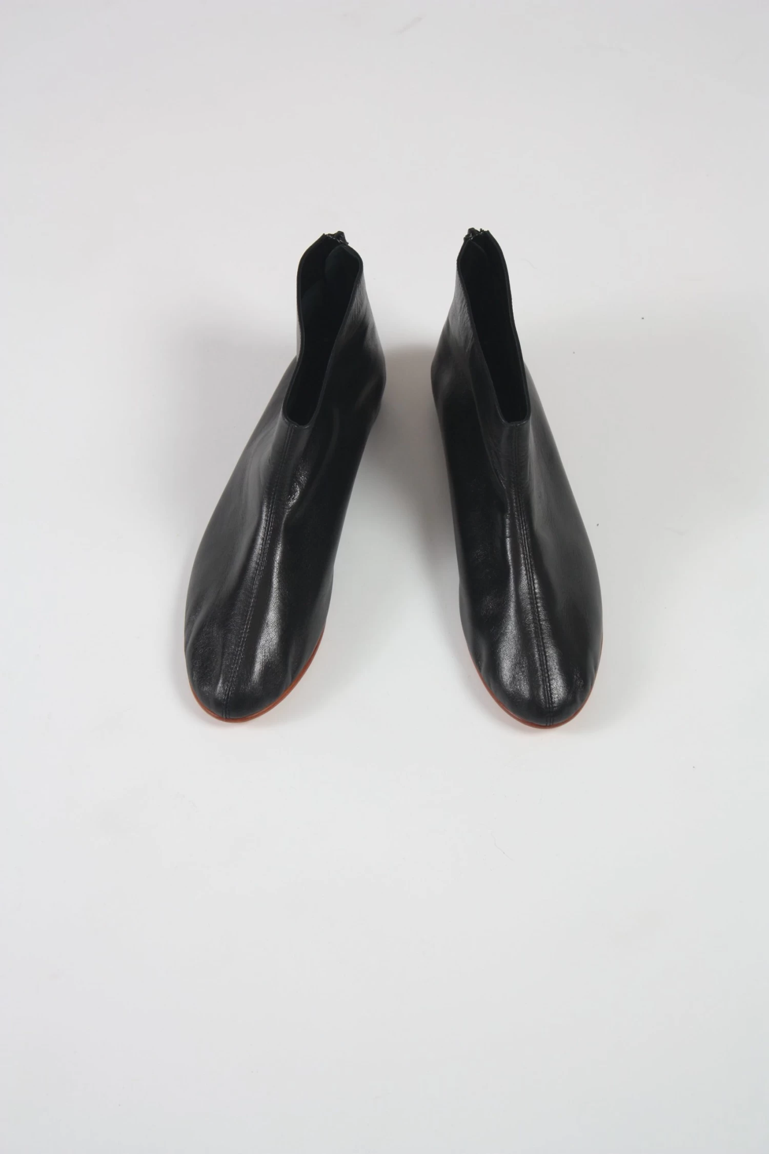 Handmade ankle boots in soft kidskin leather that fit like a glove. Rounded toe and low stacked heel.