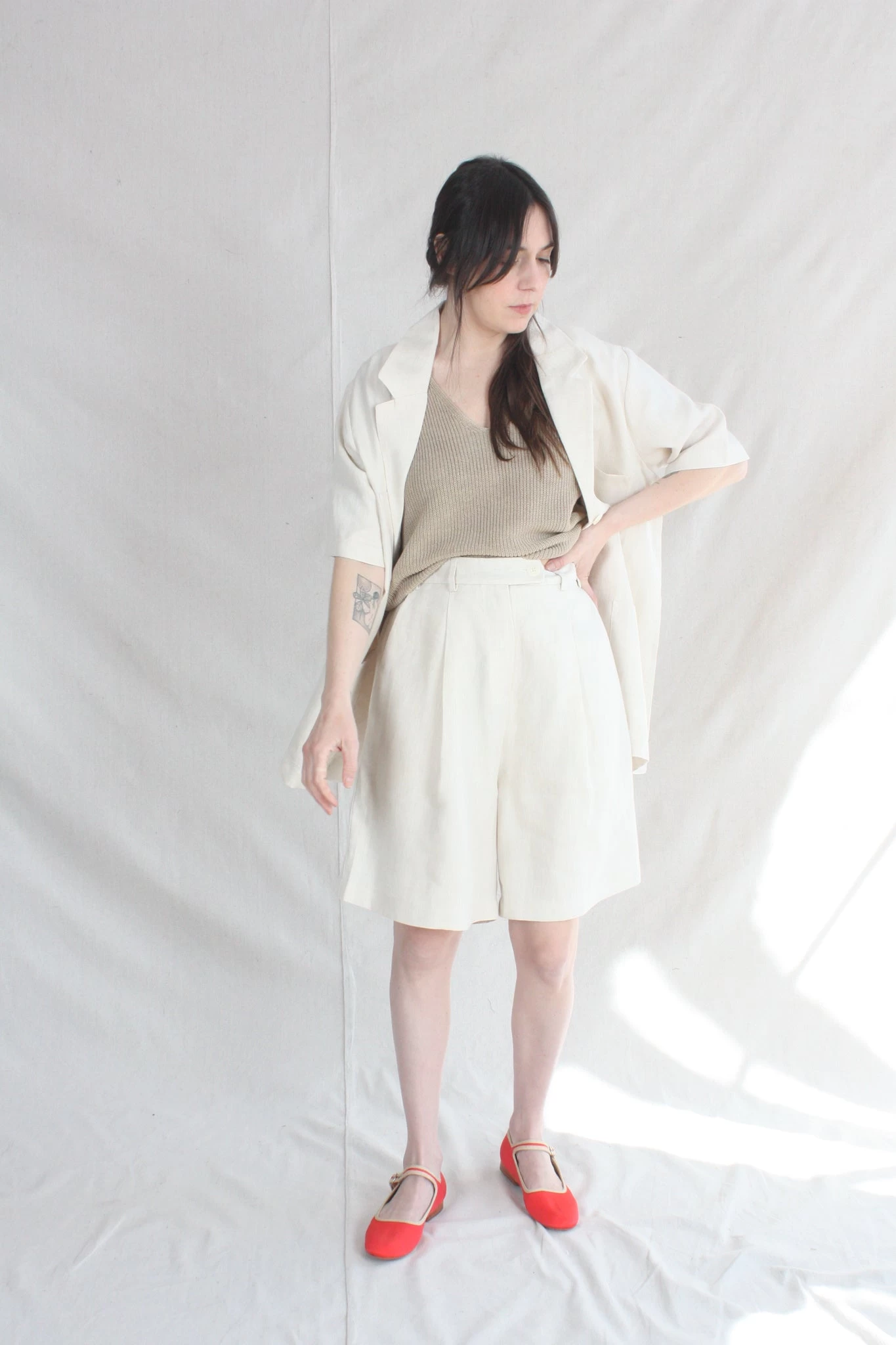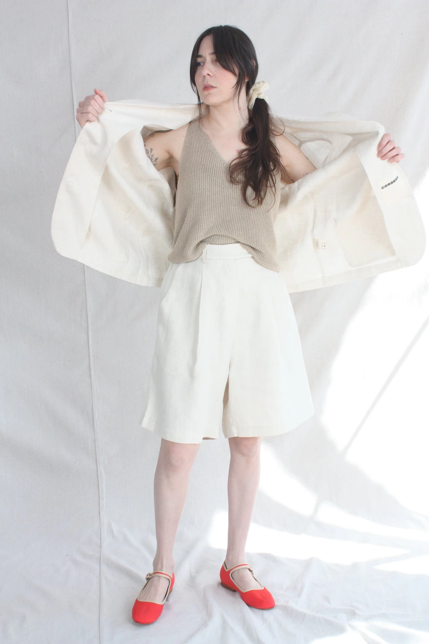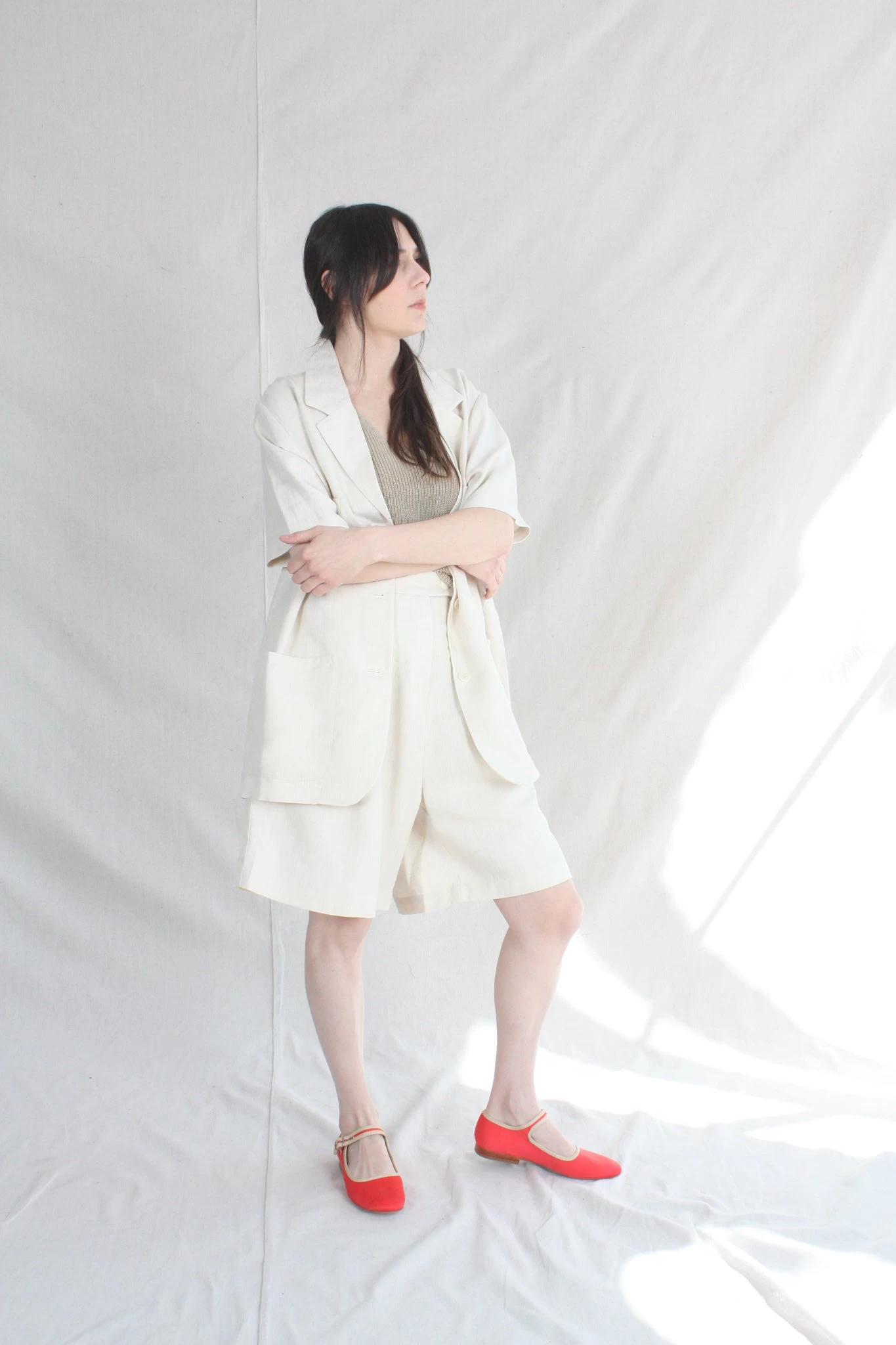Timeless yet modern, blazer top in a light and airy linen perfect on its own or pair with the Linen Bermuda Short. Loose fit for easy wearing. Blazer collar, button front, three front pockets and short sleeves. This shirt is ethically and carefully manufactured in La Coruña (Spain), crafted from high quality fabric and dyed locally with the latest technology and sustainable methods.