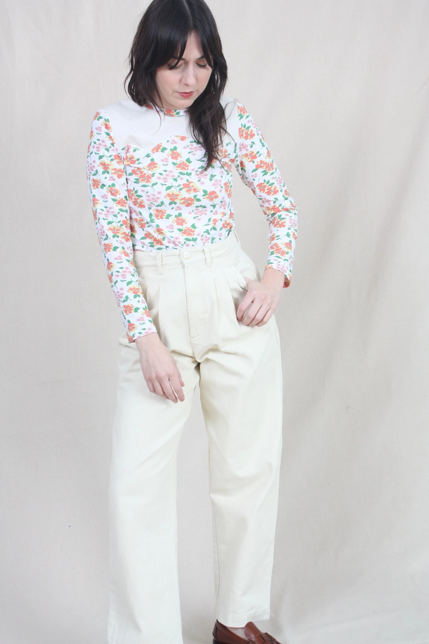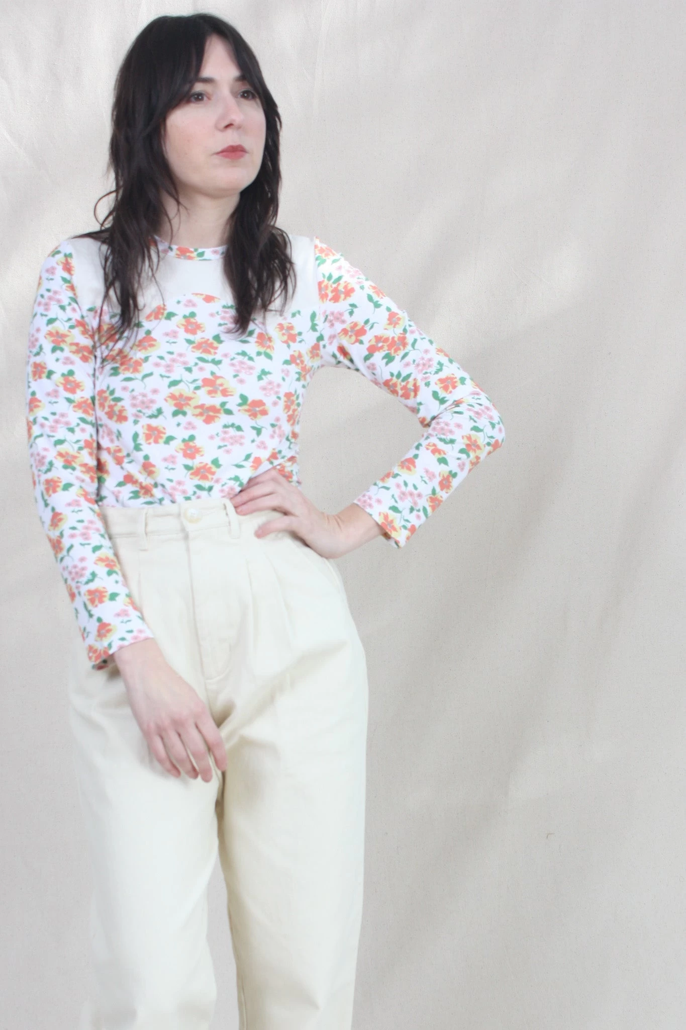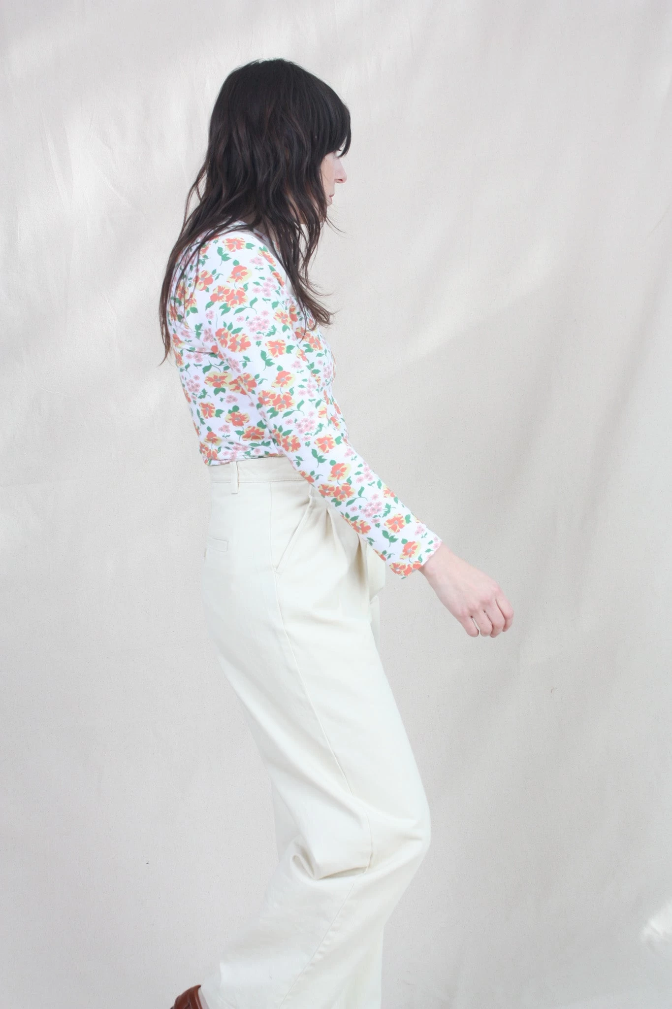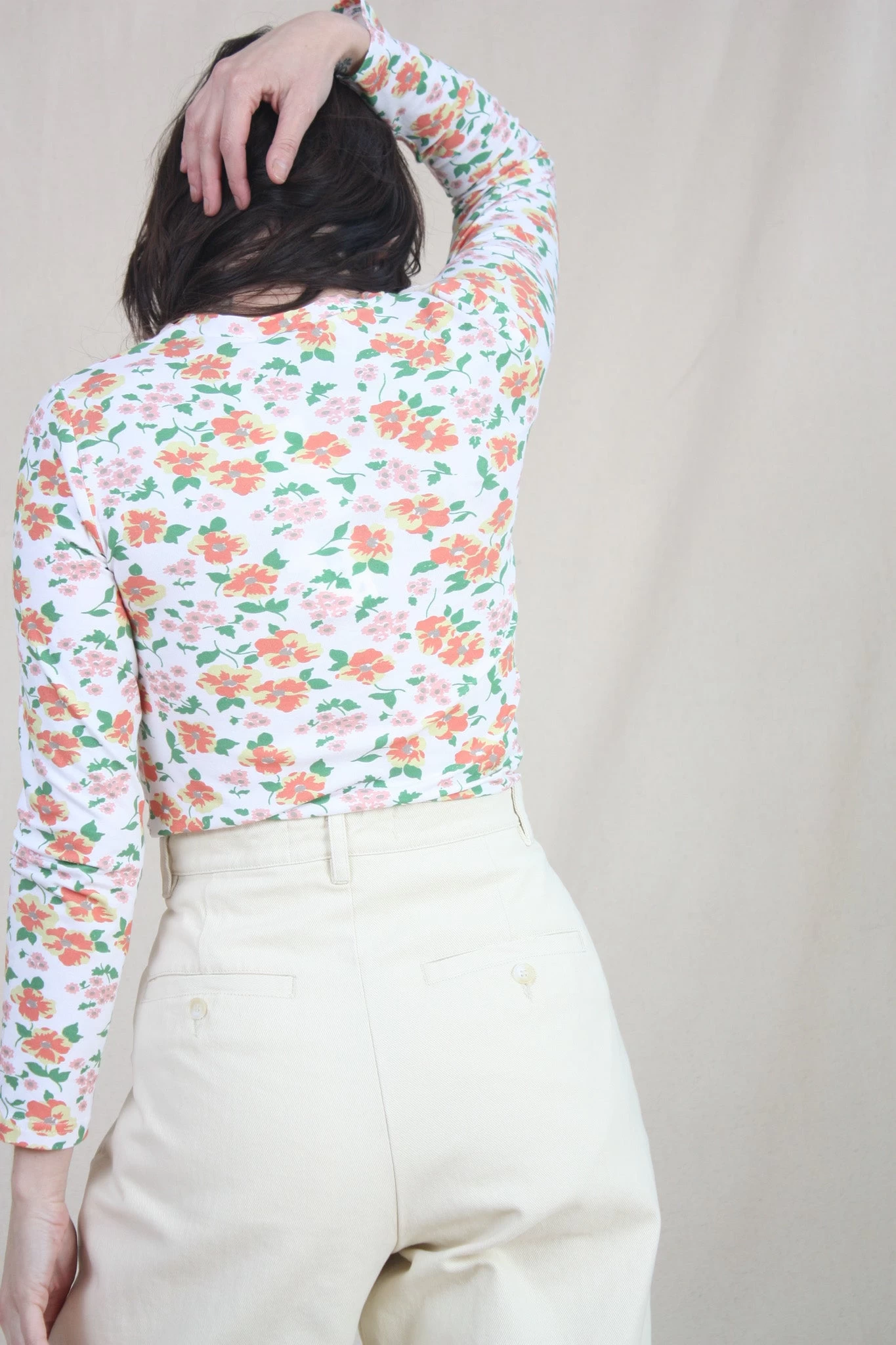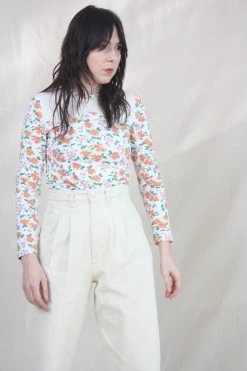 A slimmer-fit long sleeve in Carleen’s 10 year anniversary Feedsack Floral print. Lightweight cotton jersey blend with unbleached organic cotton accents.
