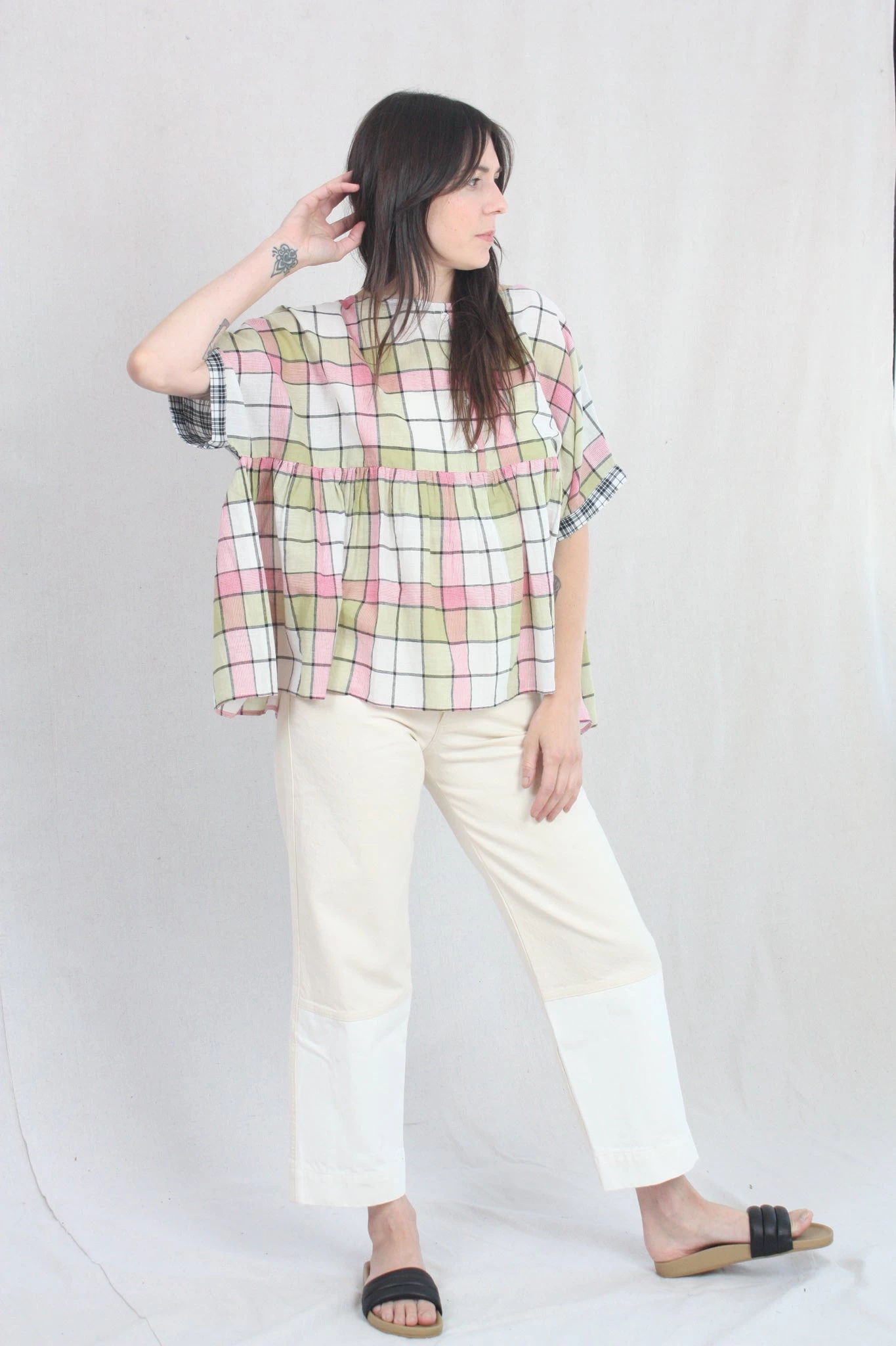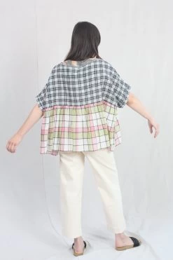 Loose, easy top. Each piece is unique and color pattern will vary.