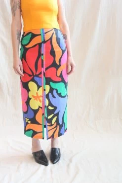 Molly is a high-waisted pencil skirt with a hem that hits at mid-calf. Featuring a center front slit and invisible side zipper.
