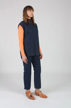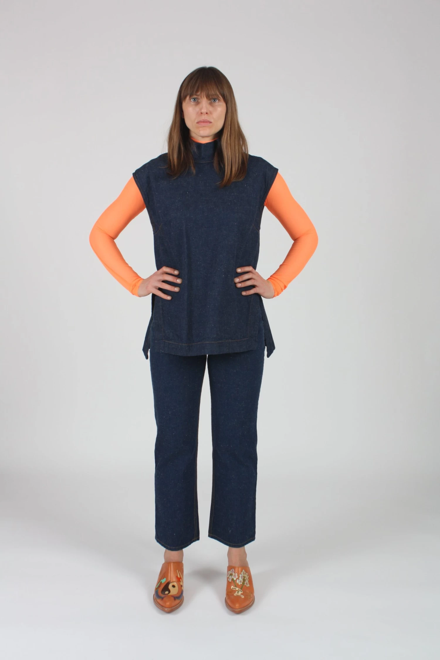 High waisted jean with straight leg. Comfortable, true to size fit. Five pocket styling. Zipper fly and button closure. Marigold top stitching throughout. This denim comes from a mill who is a member of the Better Cotton Initiative, a membership-based organization focused on creating a more sustainable cotton sector.