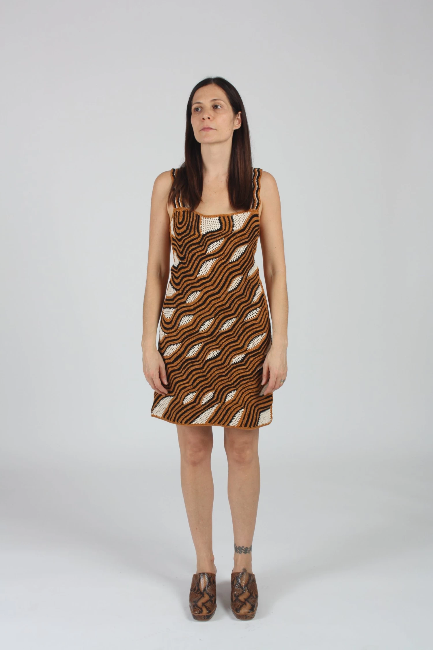Sleeveless crochet mini dress. This crochet is produced by a small women-led cooperative in Peru specializing in crochet and hand knits.