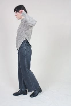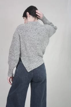 Asymmetric thick knit sweater with side opening. Dyed with natural chestnut dye.