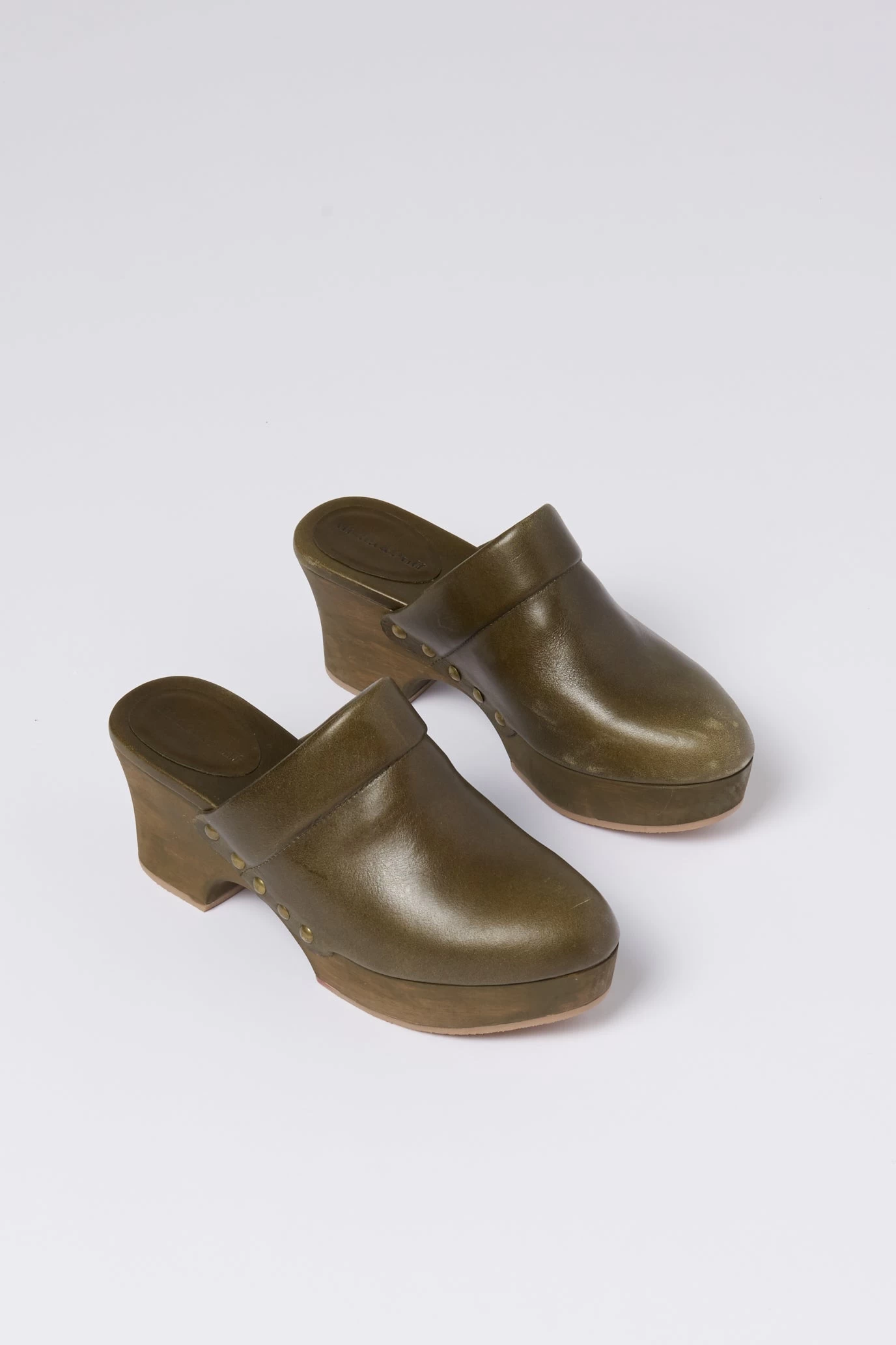 An expertly crafted classic clog. Updated with a subtle point toe, exposed stud detailing and padded collar.
