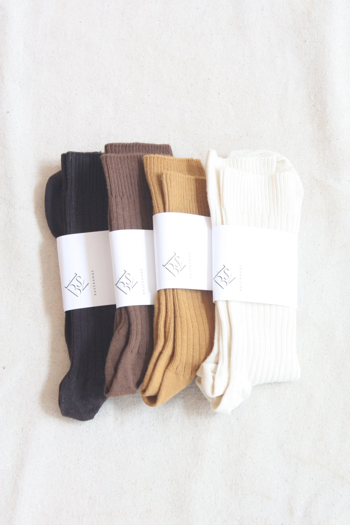 Rib knit overankle sock. Cotton is GOTS, Oeko-Tex, and OCS 100 certified.