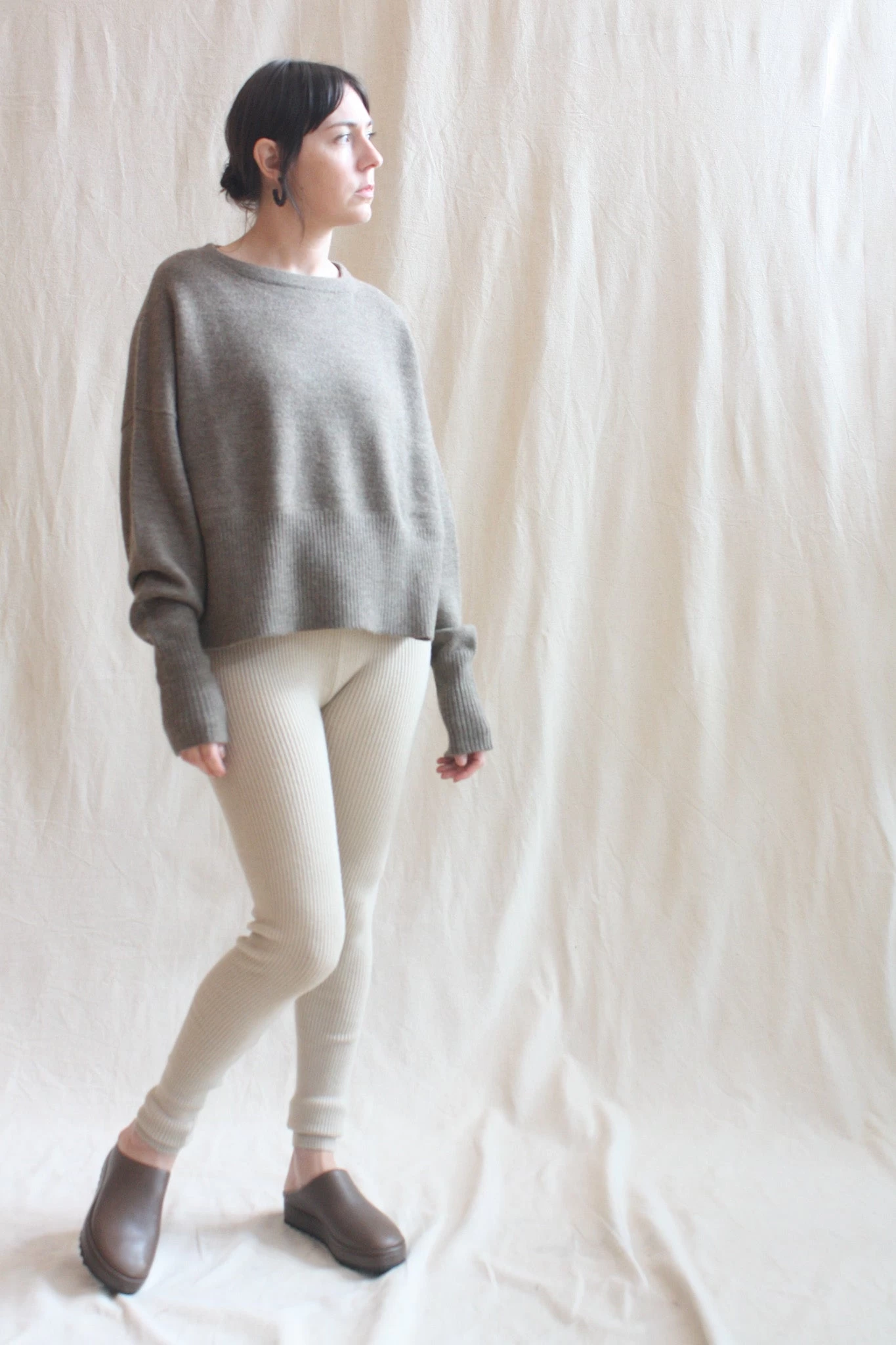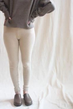 Elastic waist woolen ribbed leggings. Subtle stretch with a soft washed hand.