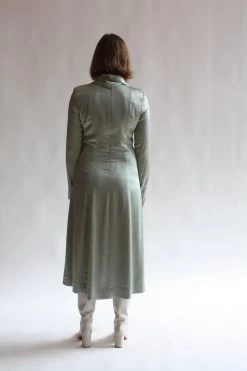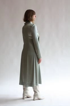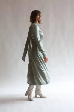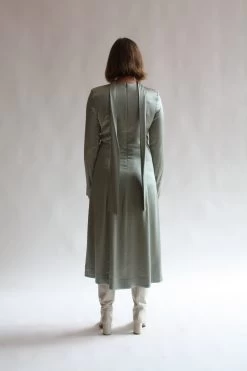 The Acela dress is a midi length dress with long sleeves in a silk bamboo crinkled fabric with a luscious sheen. Loose fit with a flare shaped skirt for a flowy look. Dry clean only.