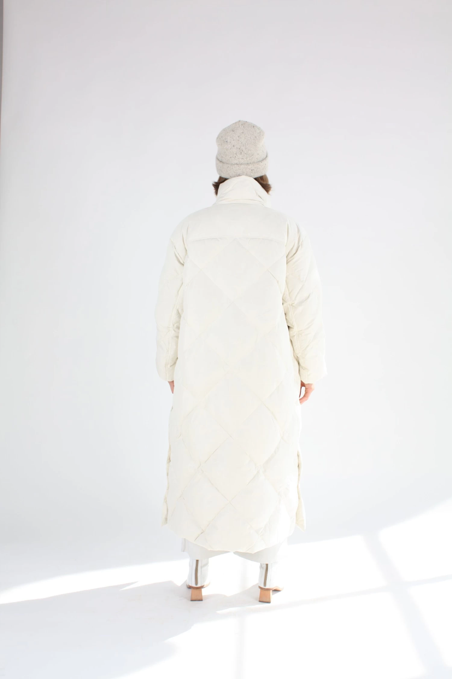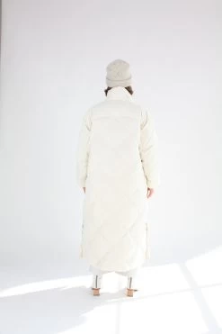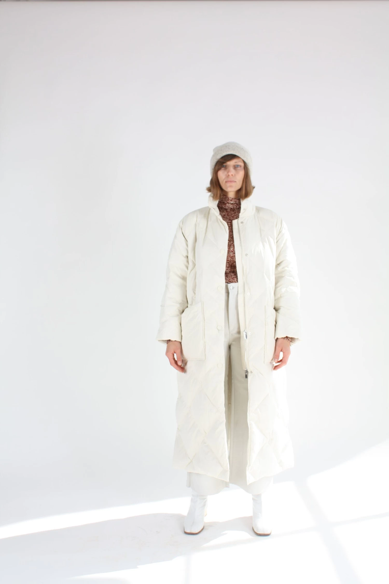 Agapita is a Rodebjer fall essential oversized long jacket made in 100% recycled down. It has dropped shoulders, an overdimensional fit and ends below midcalf. Rubber finished press-buttons covers the silver zip at front. Wear over all your autumn and winter looks. Dry clean only.