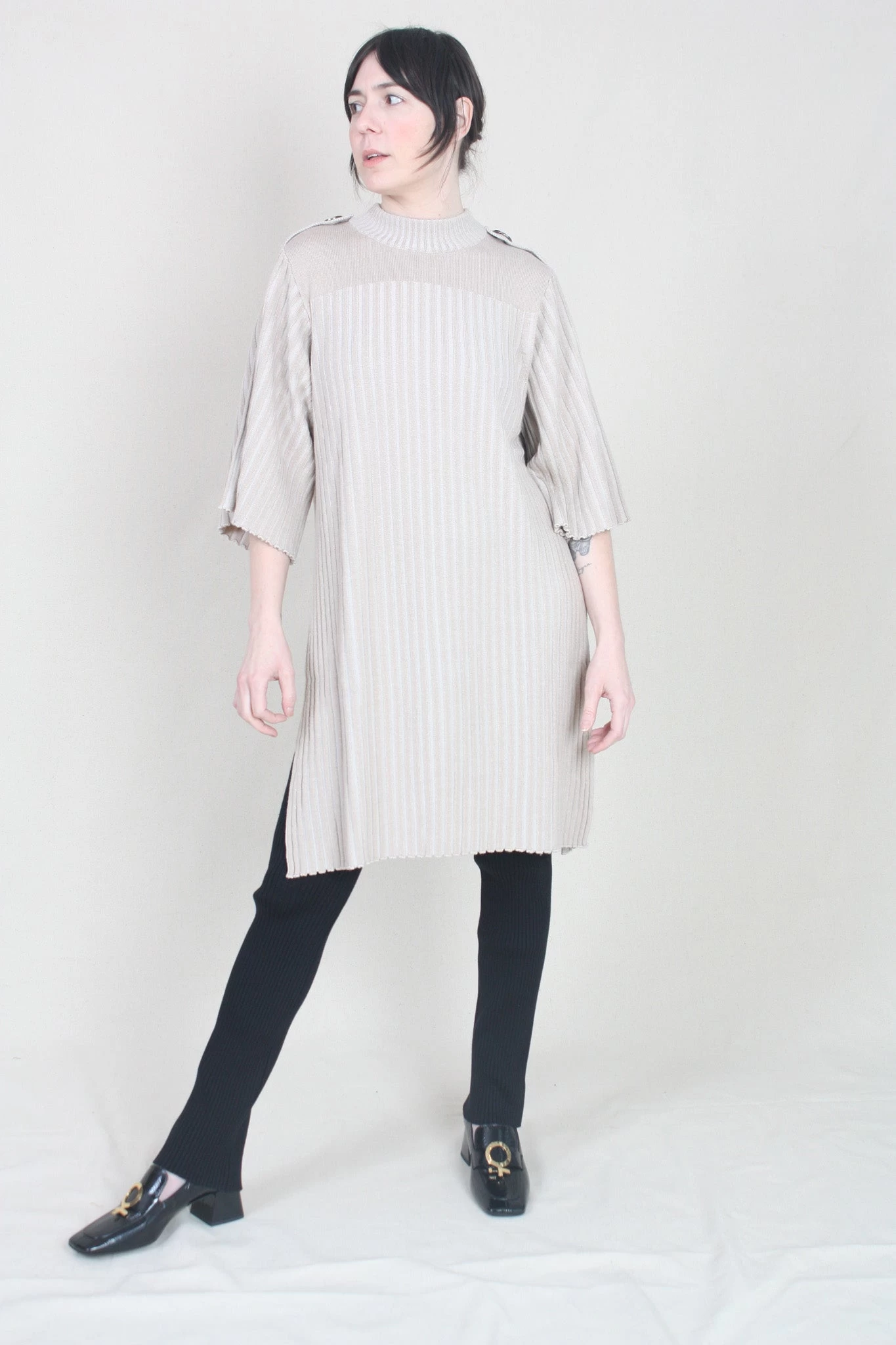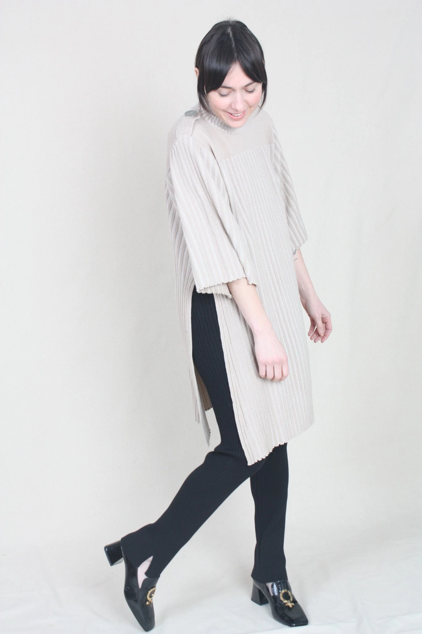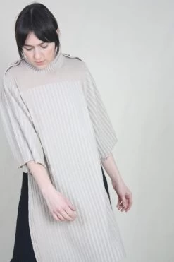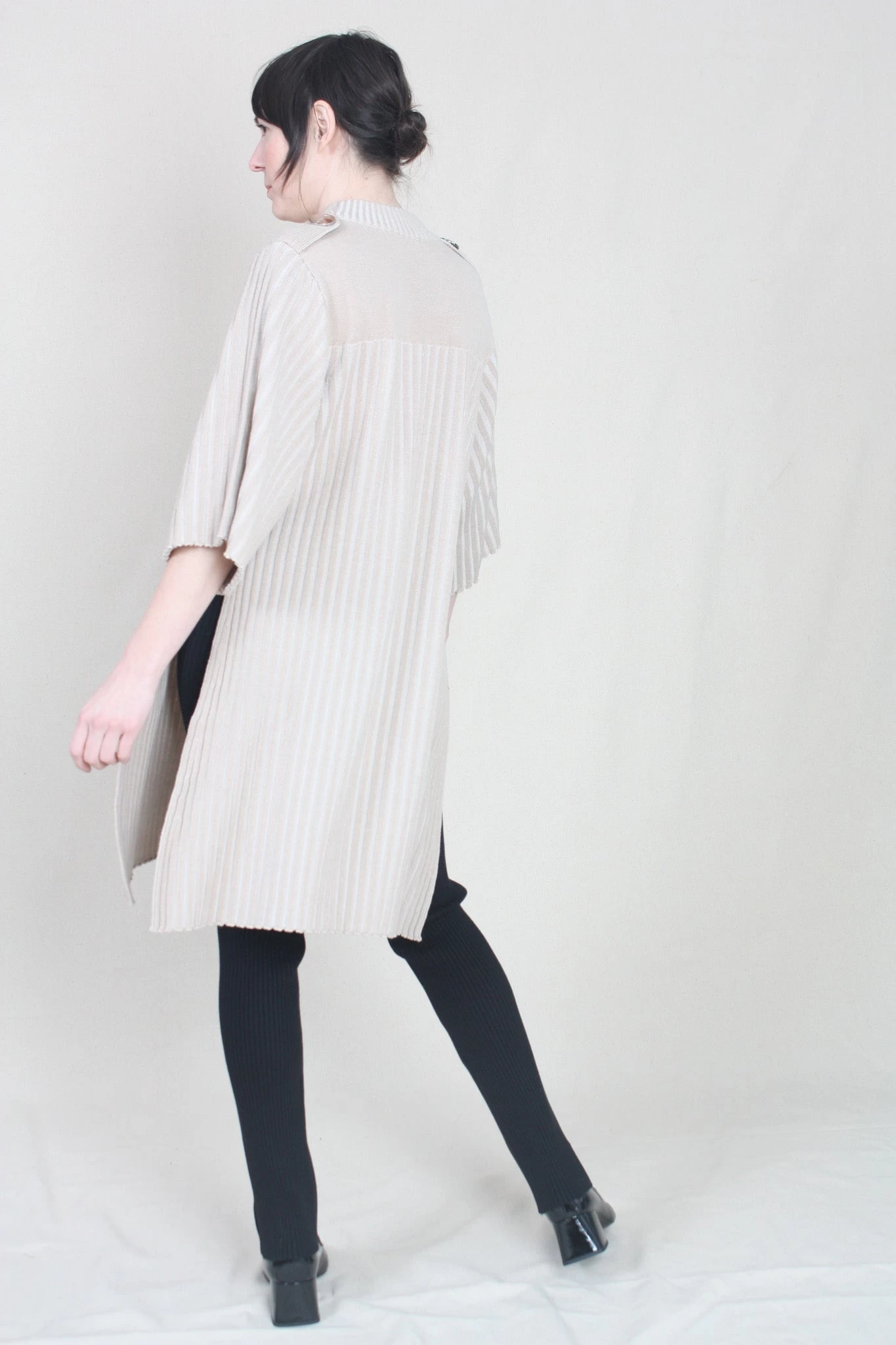 Amaka is a knee-length, knitted tunic produced in an extra fine RWS Merino rib. This super soft tunic is designed with elbow-length sleeves and long side slits. Amaka has a relaxed fit with shoulder epaulettes adorning branded metal buttons.
