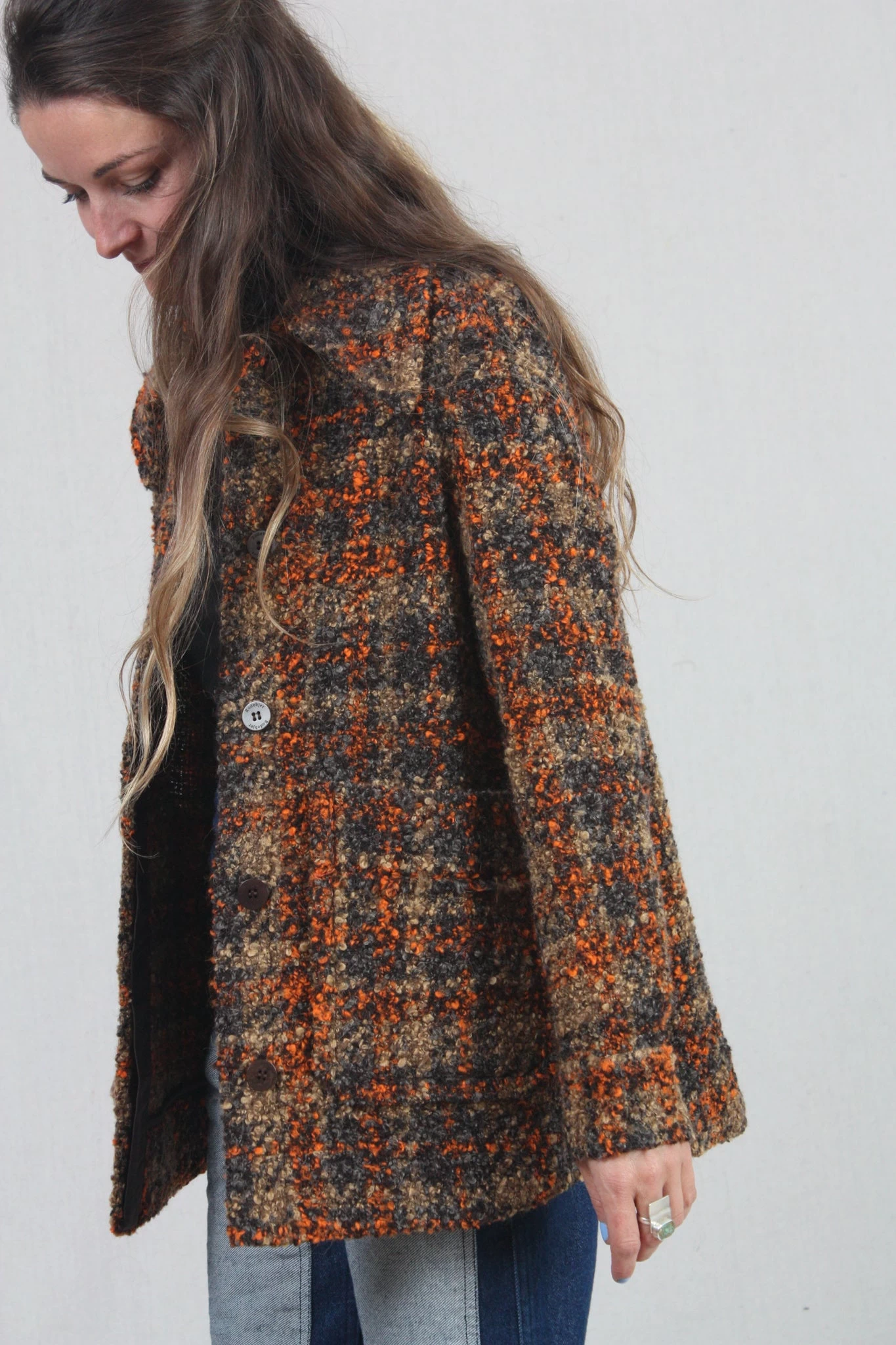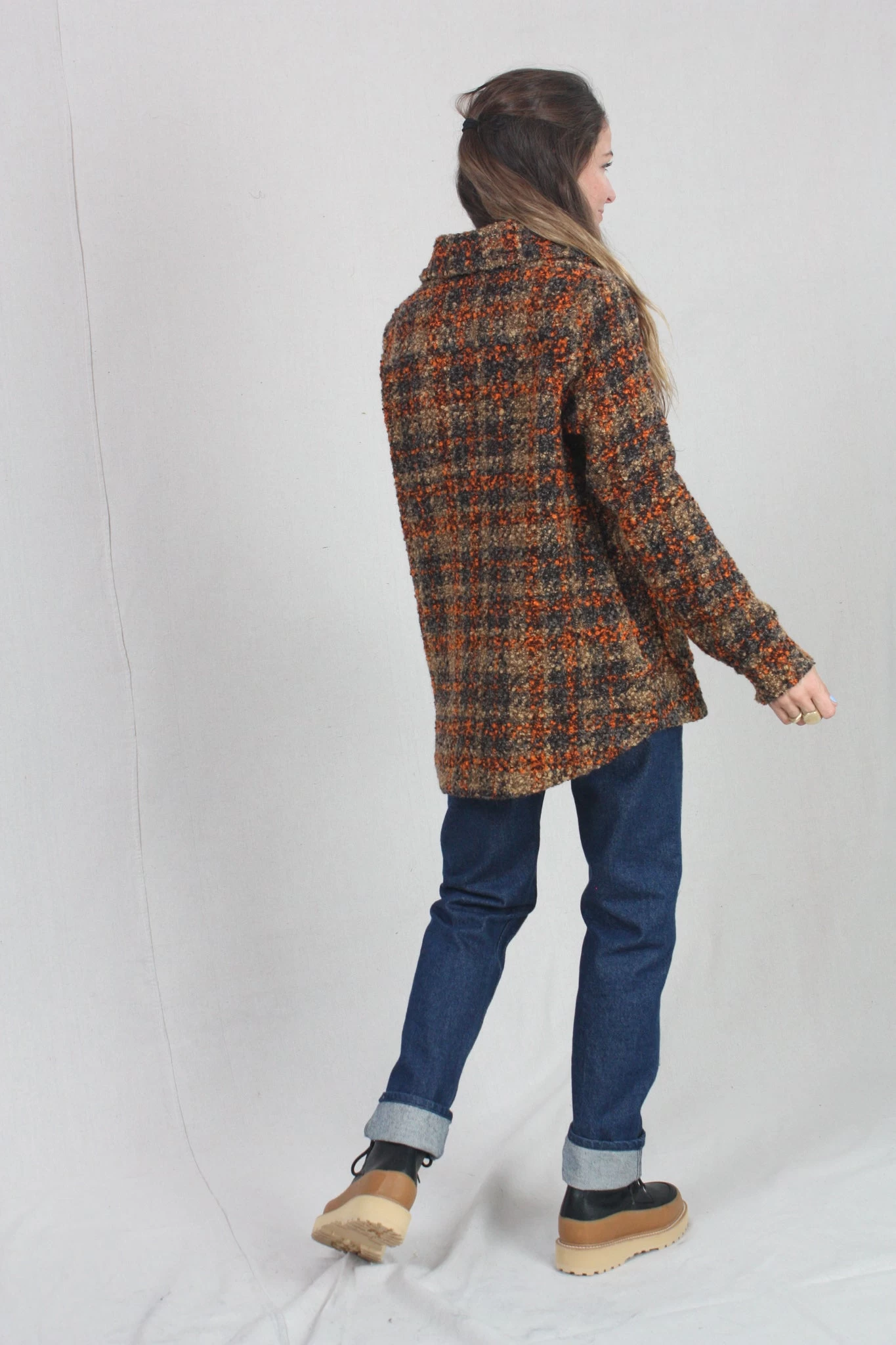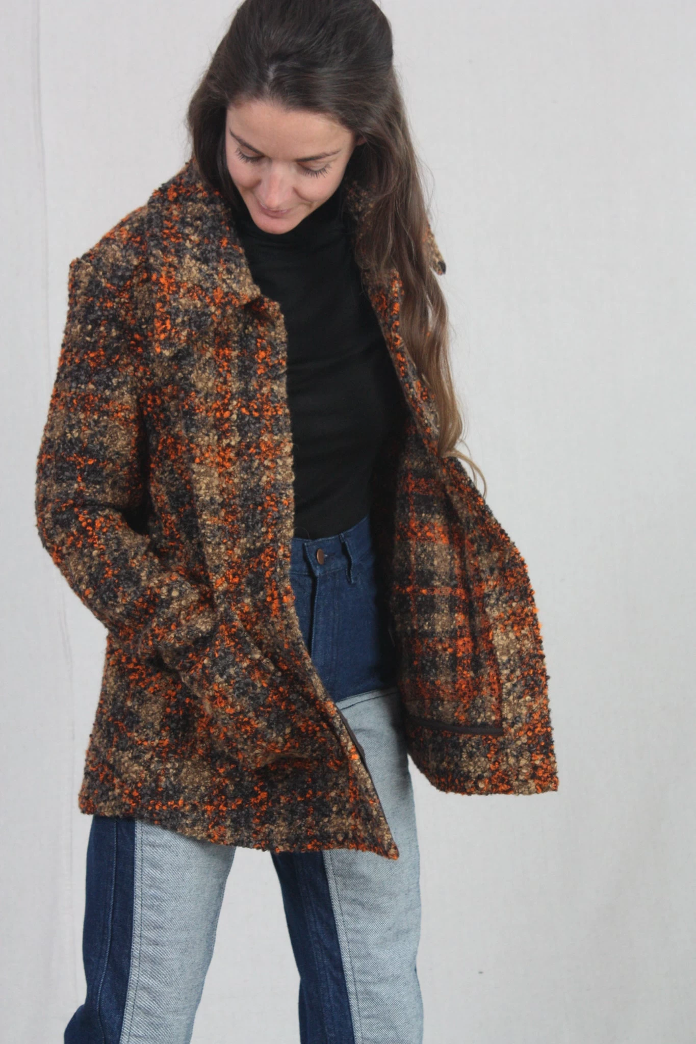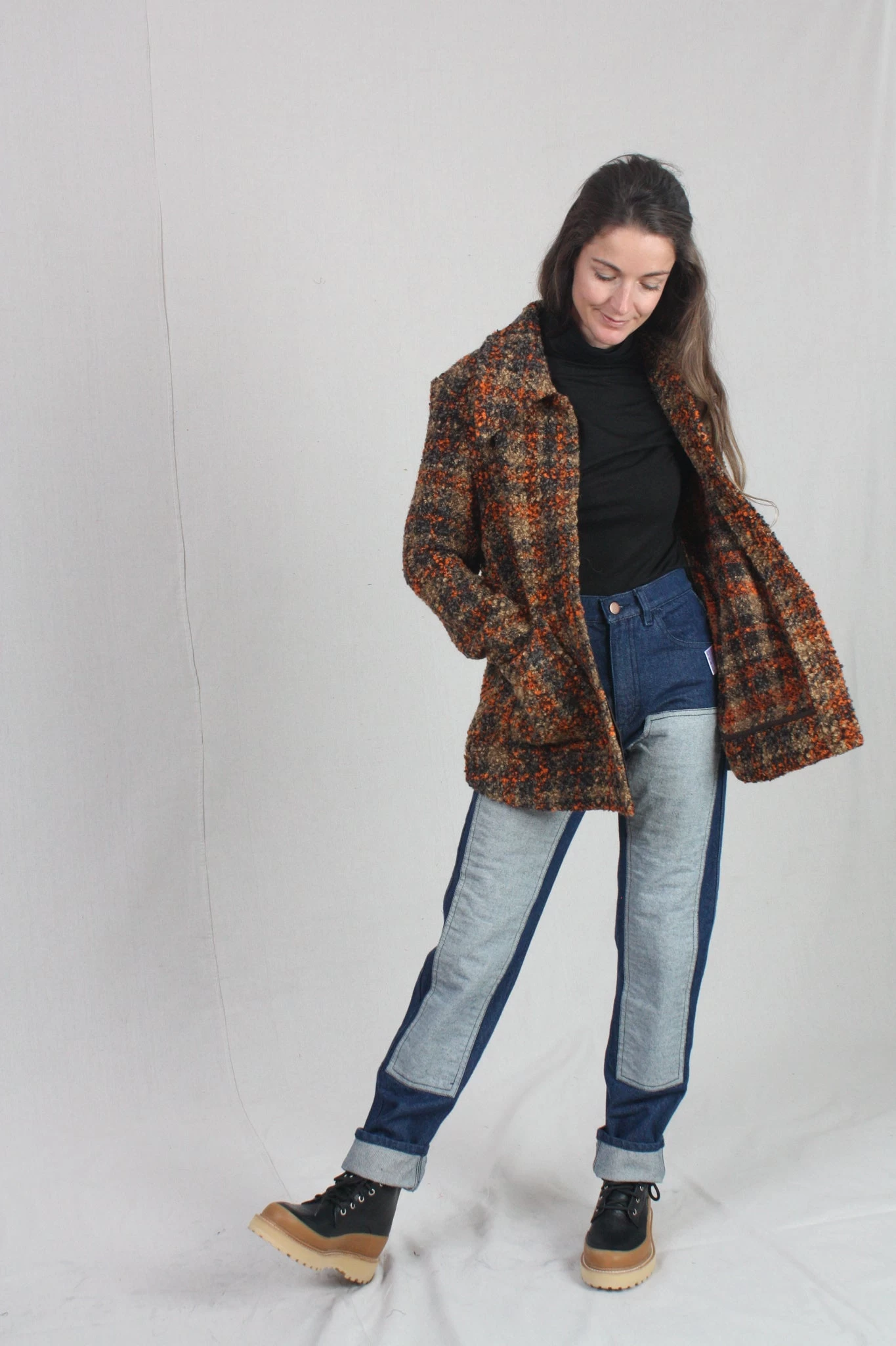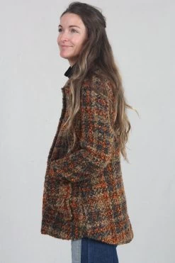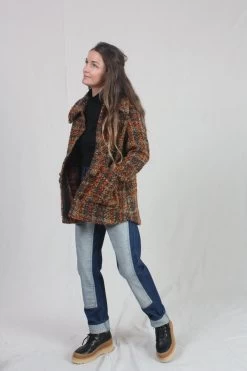 Boel is a workwear inspired overshirt made in a classic and timeless houndstooth pattern. It’s designed in a relaxed fit, in seat length with regular shoulder and long sleeves. Boel is made from a boucle yarn to give it a lively surface. The shirt has two almost invisible pockets with raw edges at front. Fits true to size.