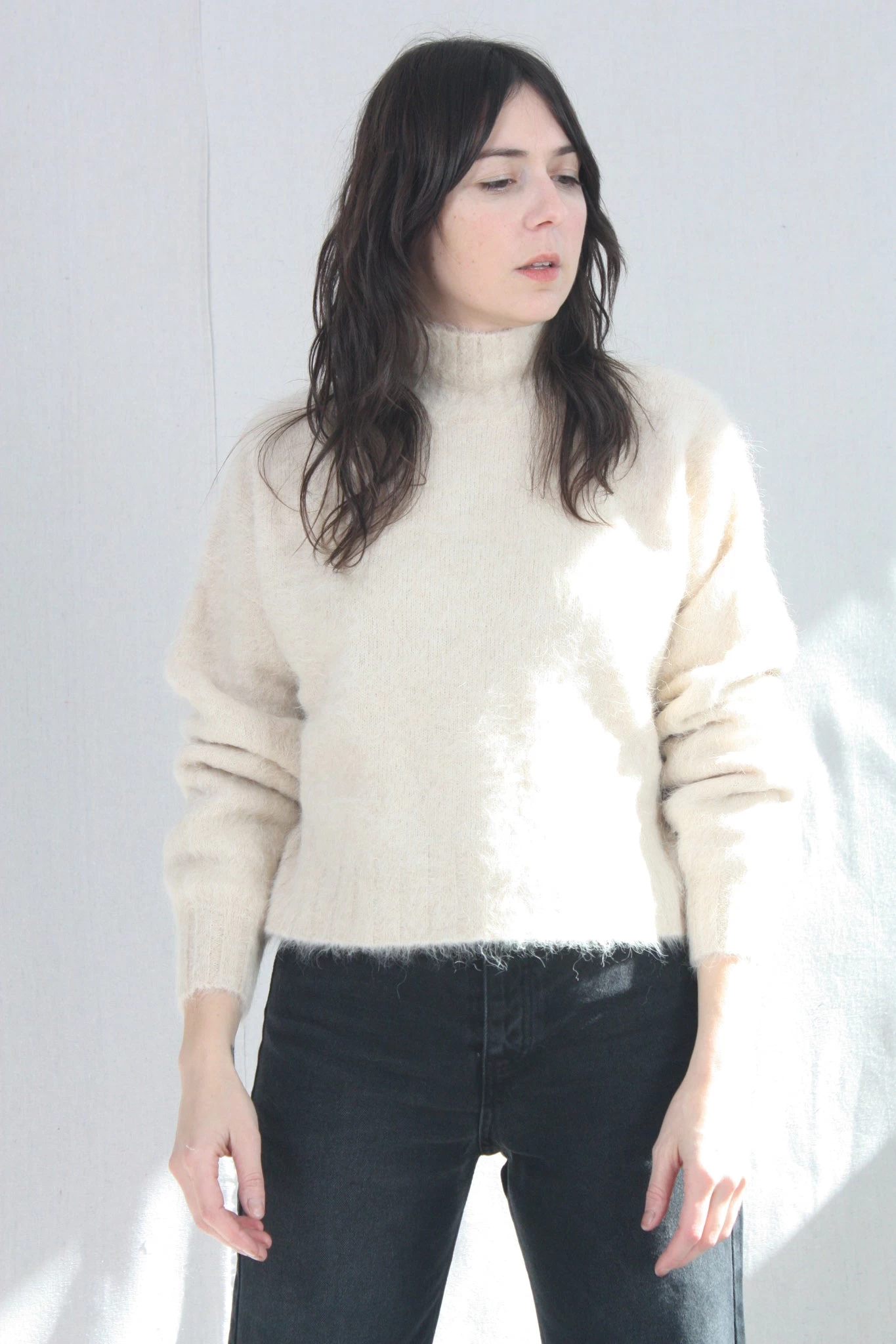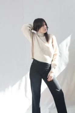 Falala is a knit, relaxed-fit turtleneck made with dropped shoulders and ends in hip length. This soft and super cozy turtleneck is designed with a ribbed neck, ribbed sleeve ends and a ribbed bottom hem. Style this turtleneck with your favorite denim or together with a high-waisted skirt.