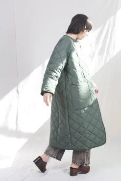 Sandler is a quilted statement coat. It has a loose fit, a round neck, big pockets and buttons at front. Wear with anything, everyday. Designed for a loose fit: for a more narrow fit go one size smaller.