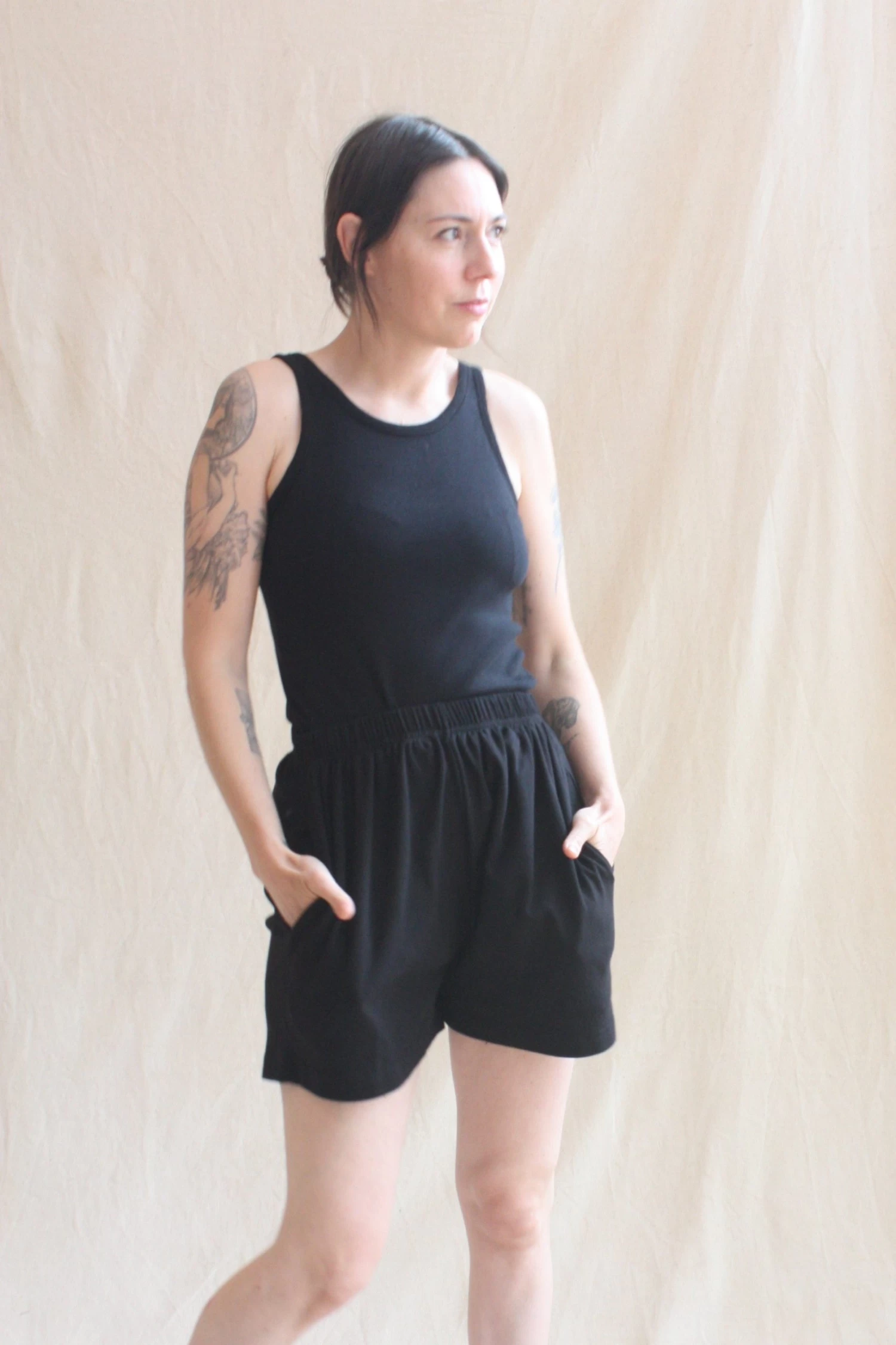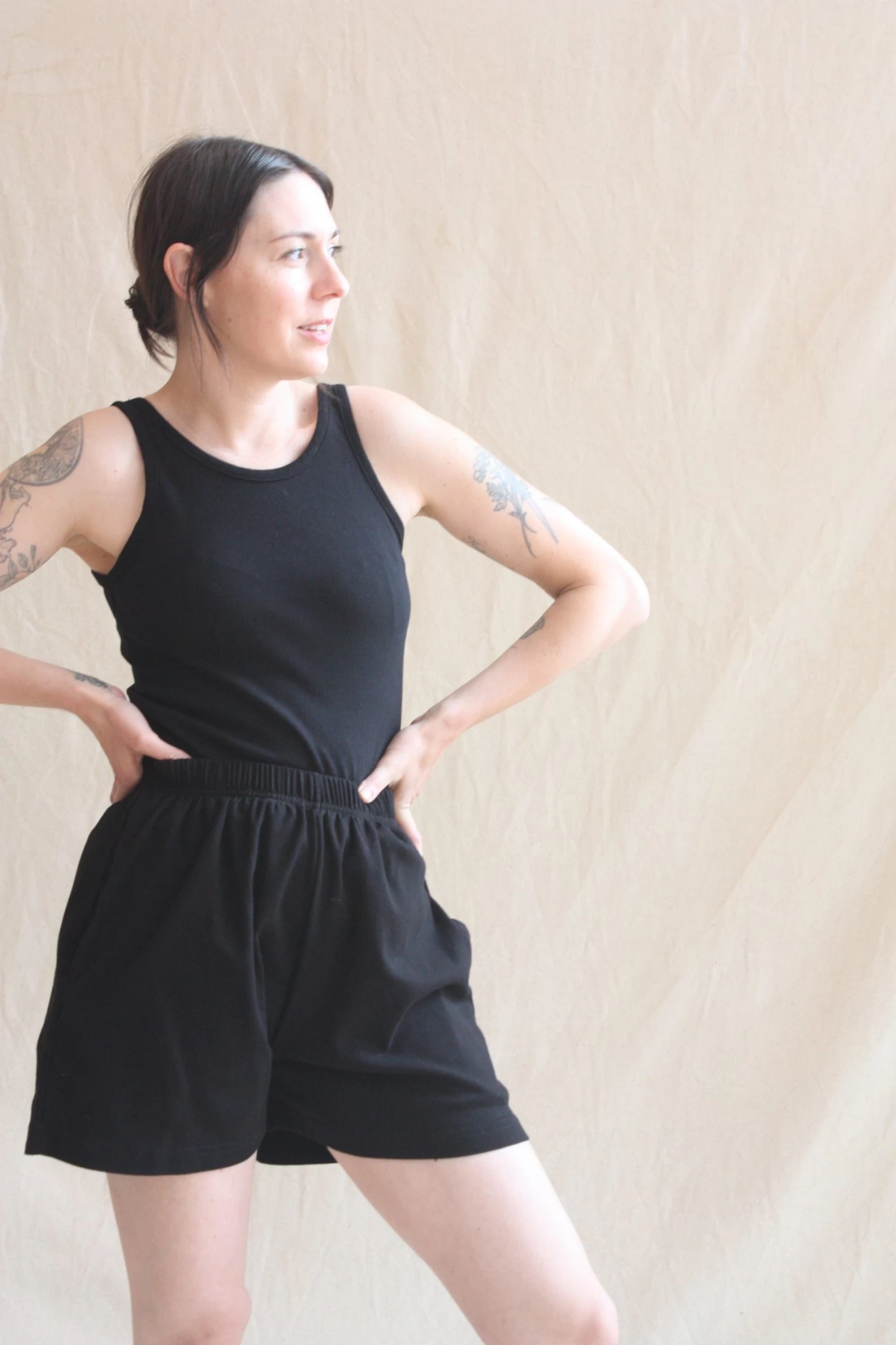 Fitted tank perfect for layering. Finished with banded edges and a low scoop back. Done in a lightweight organic cotton baby rib. This style is entirely made in America – from fiber to finish.