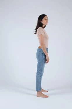 Tie front bandeau top in denim stripe. Boning at sides. Fully lined.