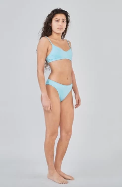 Simple bralette-style top with darts at bust for fit and 1/2″ encased elastic hem for extra support. Medium coverage. Fully lined. 2-way stretch.
