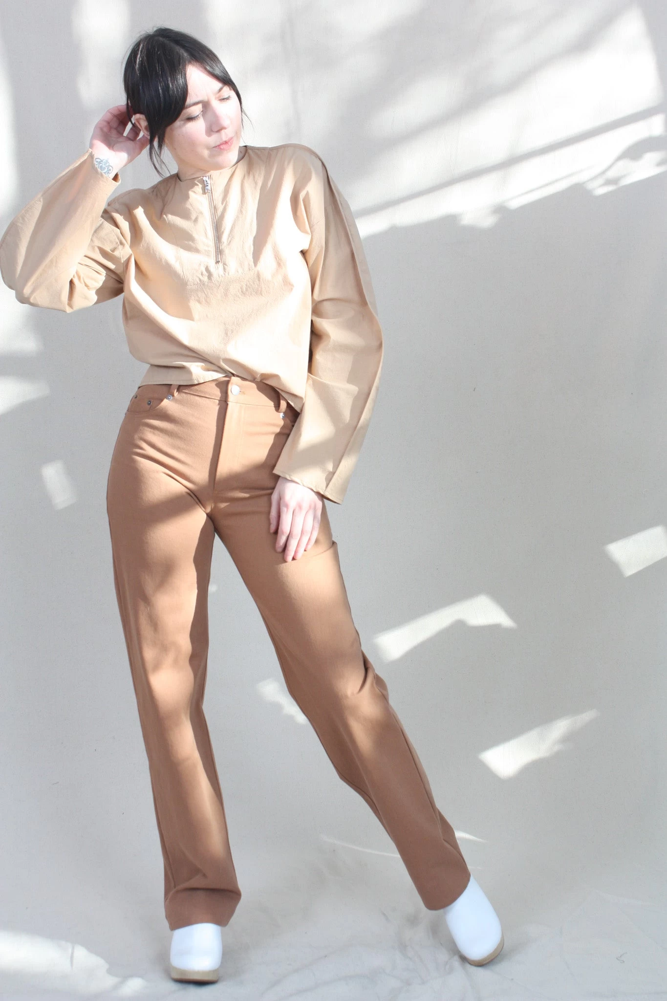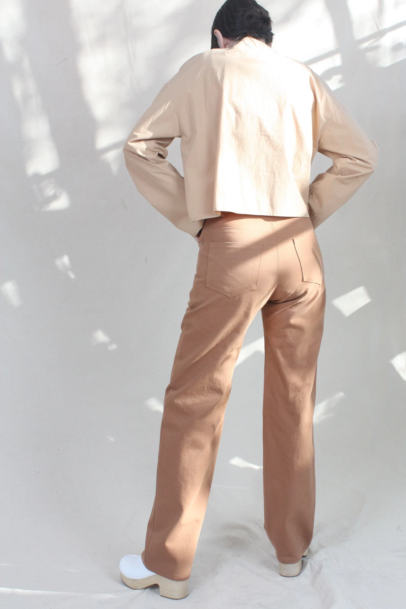 Stovepipe, midrise, straight leg denim in Cedar, medium weight cotton twill. Fits true to size.
