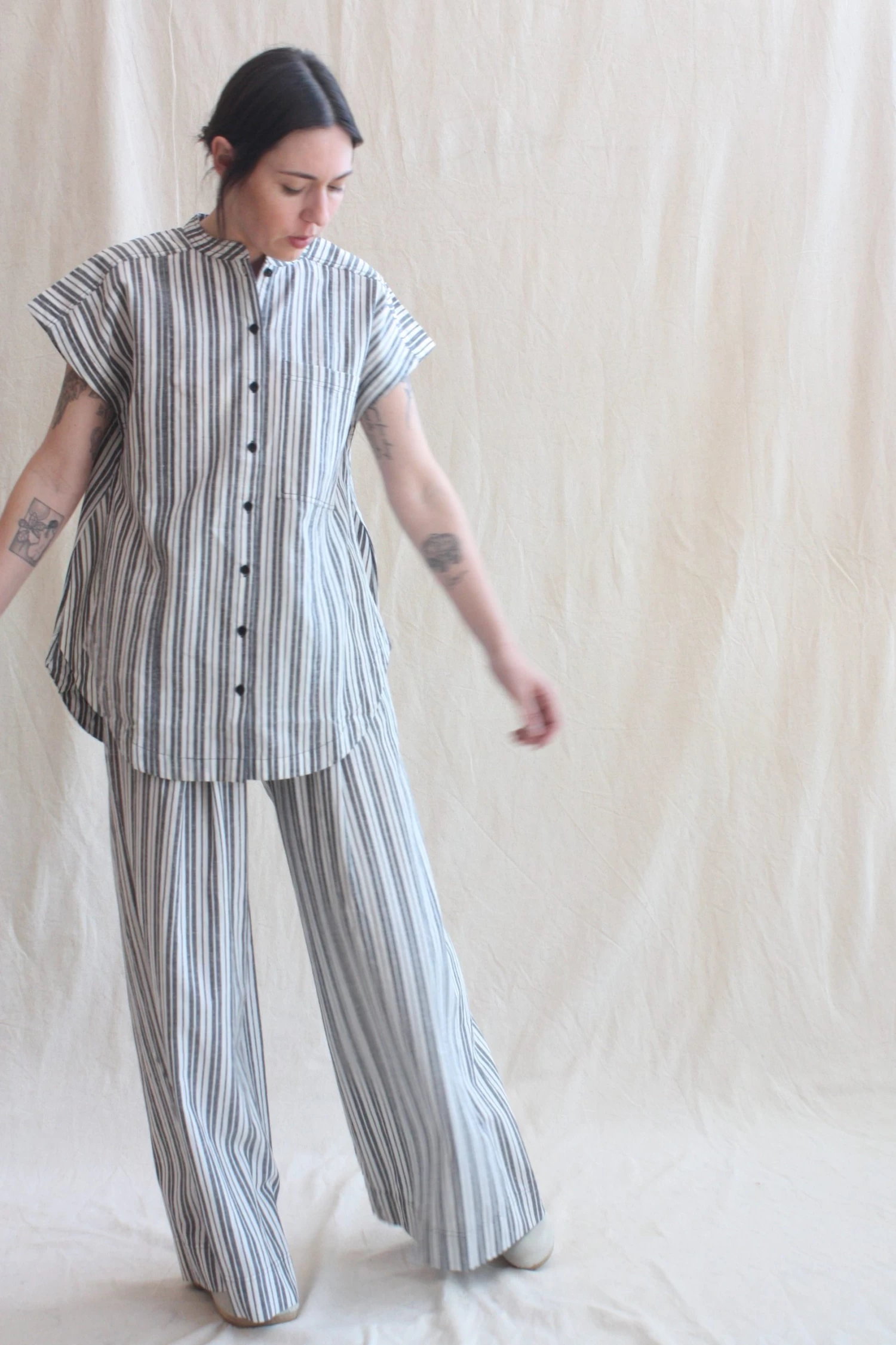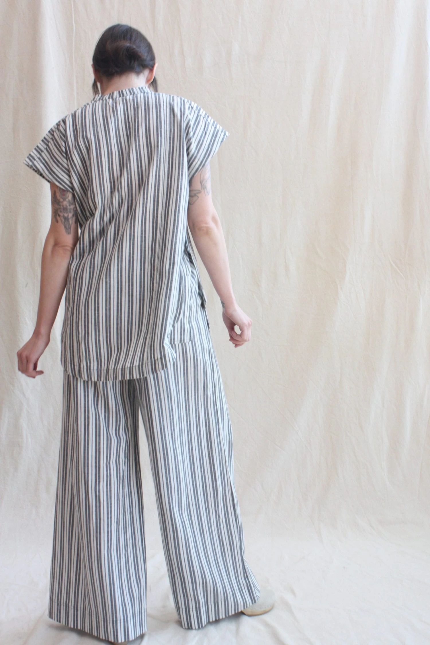 The silhouette to style endlessly! Elastic waistband, wide leg, soft pleats, slash pockets at the front, patch pockets at the back. Coordinates with the Pia Sleeveless Tunic.