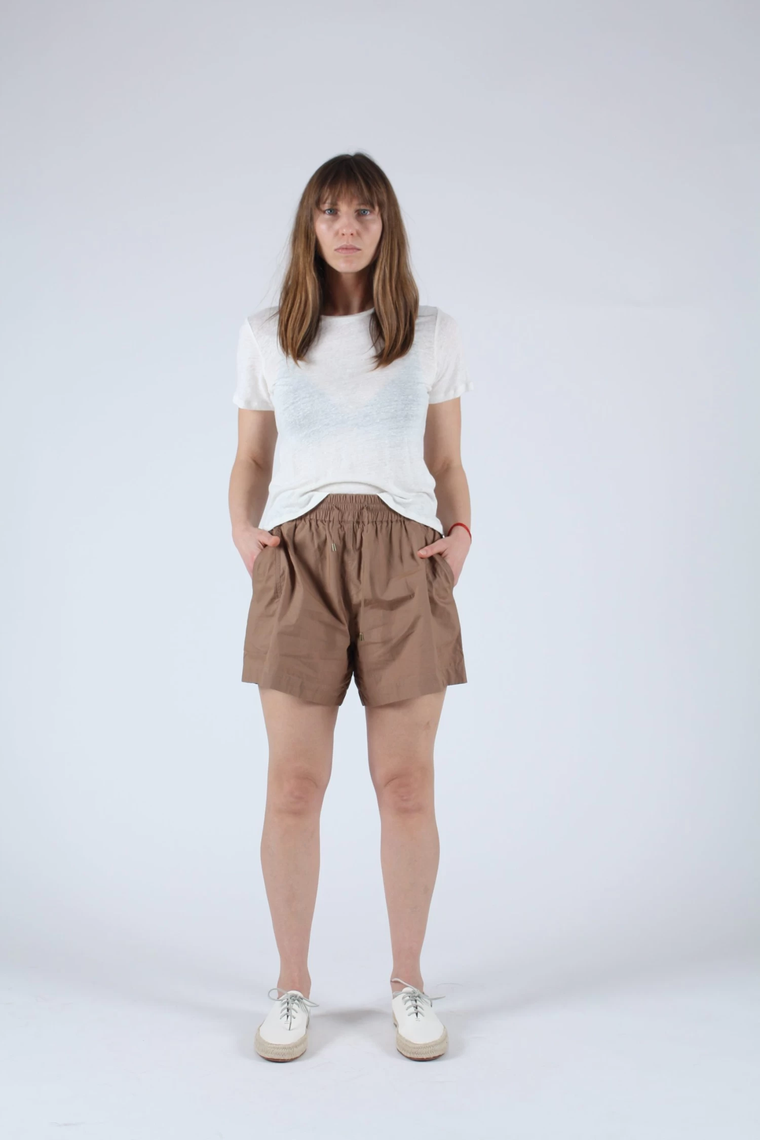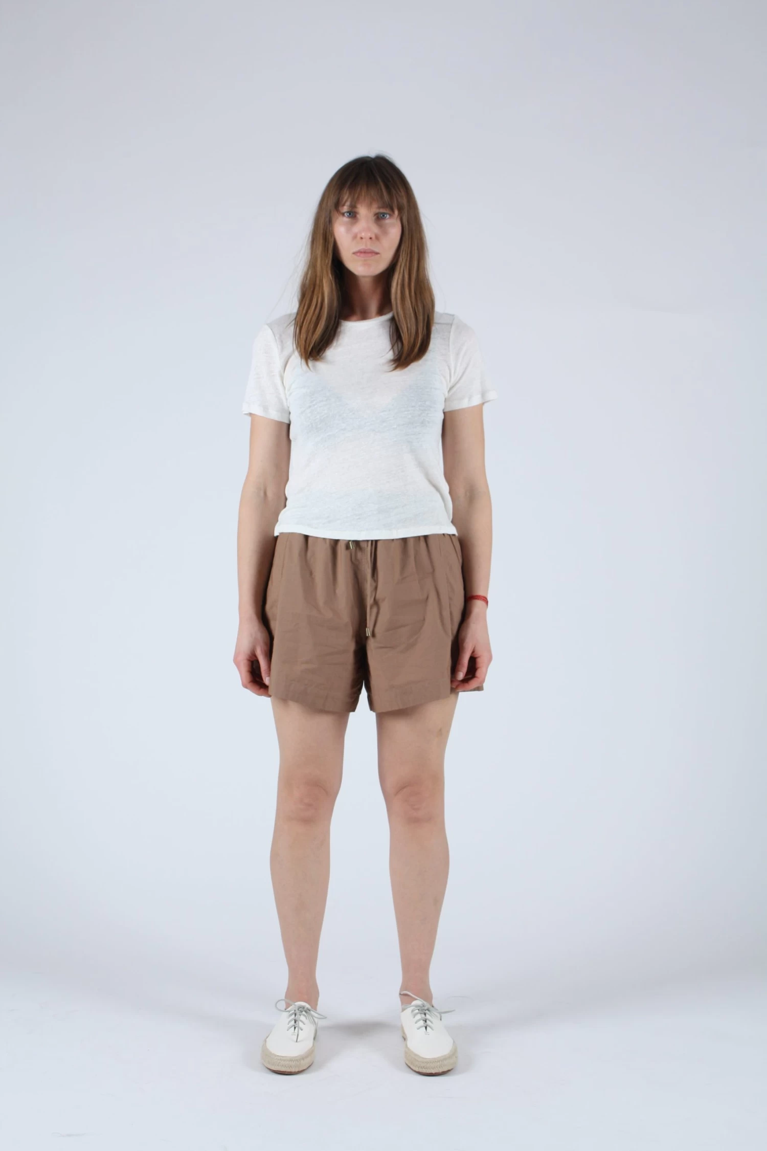 Airy, minimal and so easy to style. These high-rise shorts are made from crisp cotton with an elasticated waistband and simple drawstring tie.